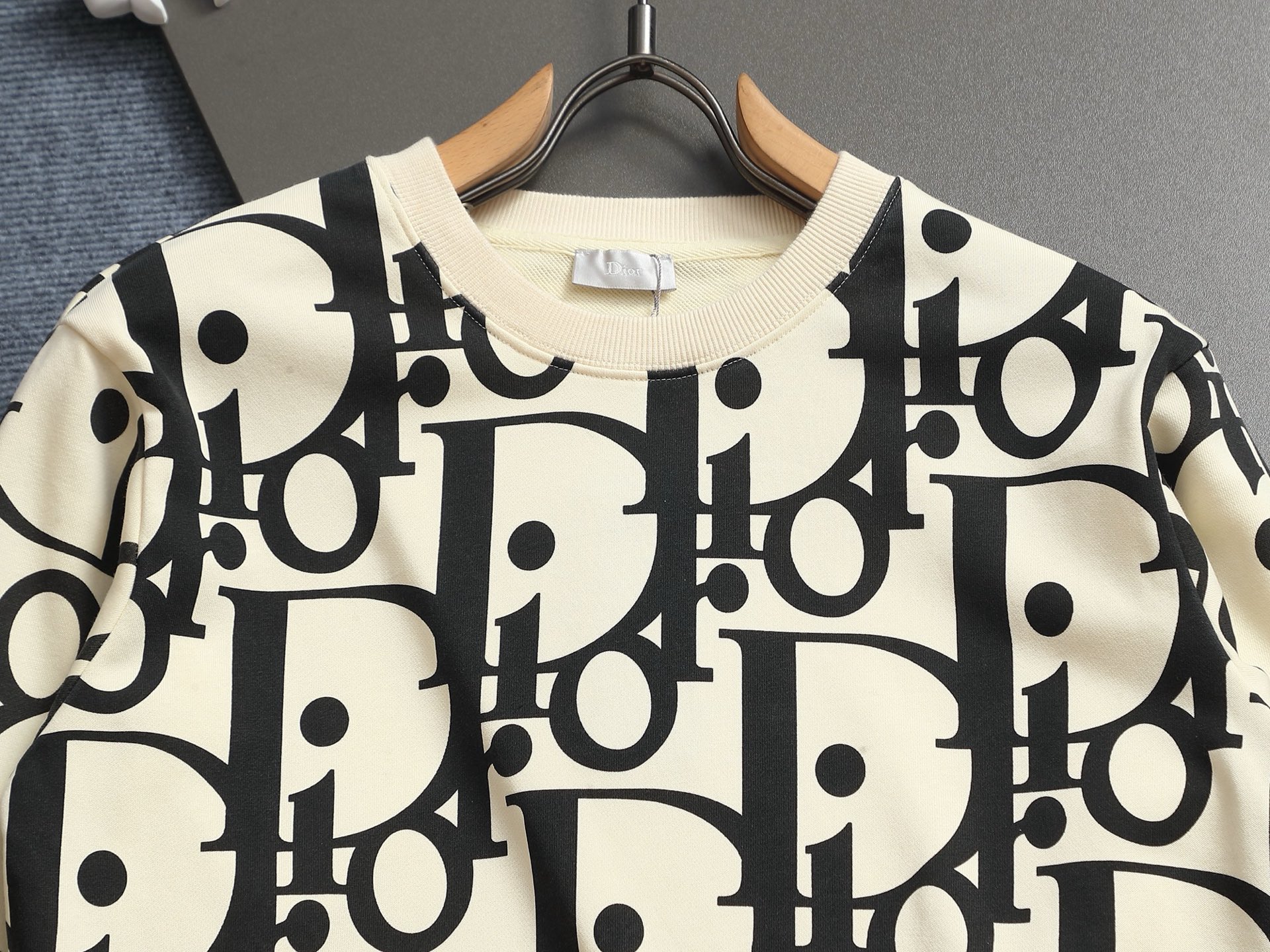 디올(Dior)의 상징적인 오블리크(Oblique) 패턴이 전면에 화려하게 수놓아진 프리미엄 맨투맨입니다.