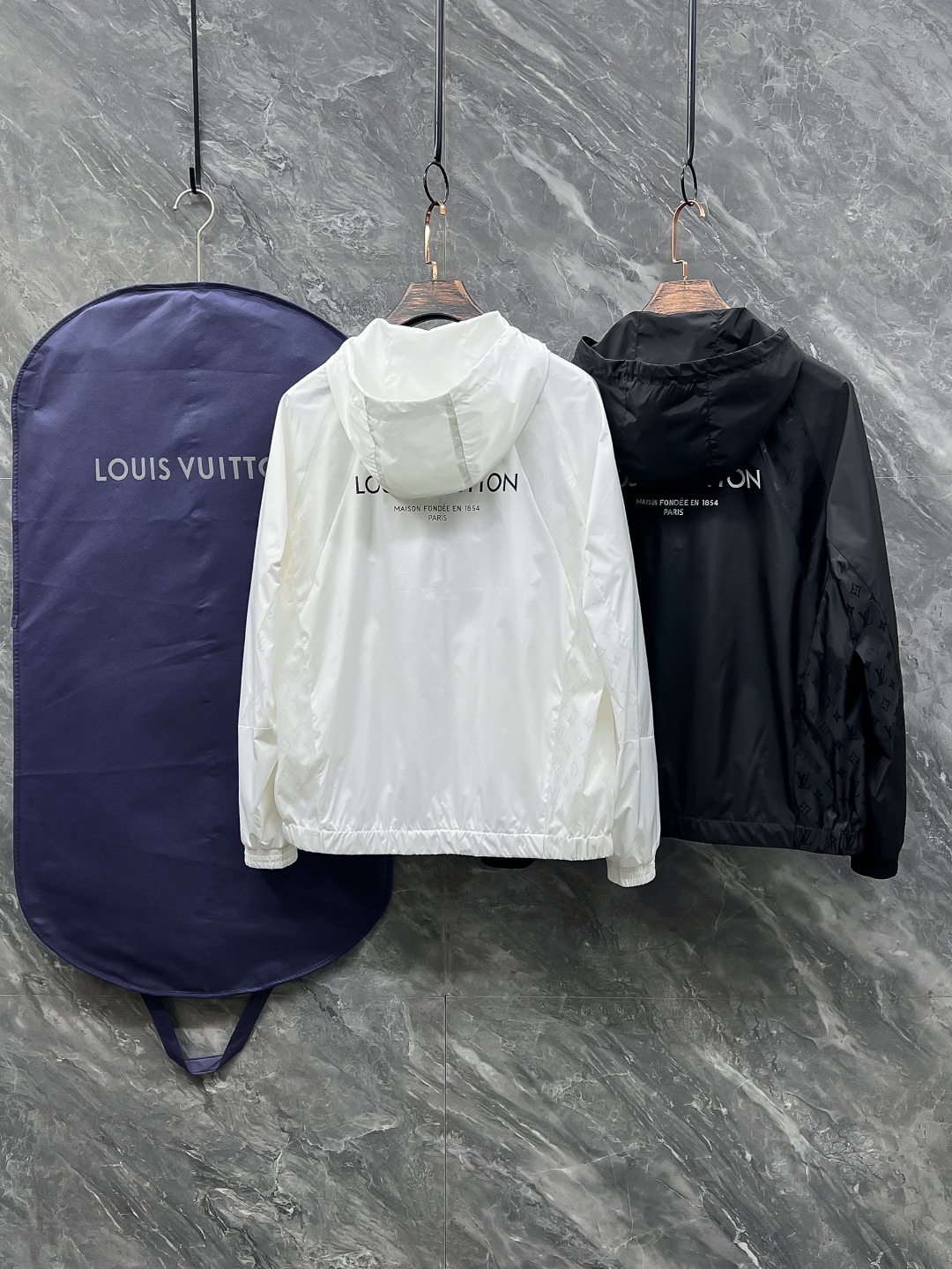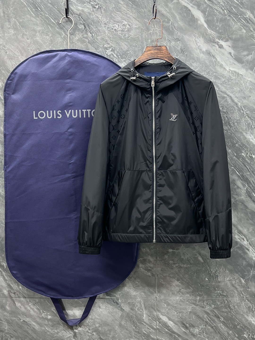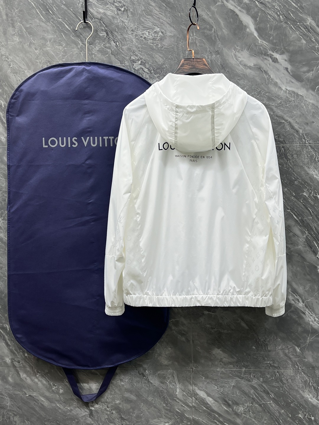 루이비통의 클래식한 무드를 현대적으로 재해석한 로고 엠브로이더리 후드 바람막이입니다.