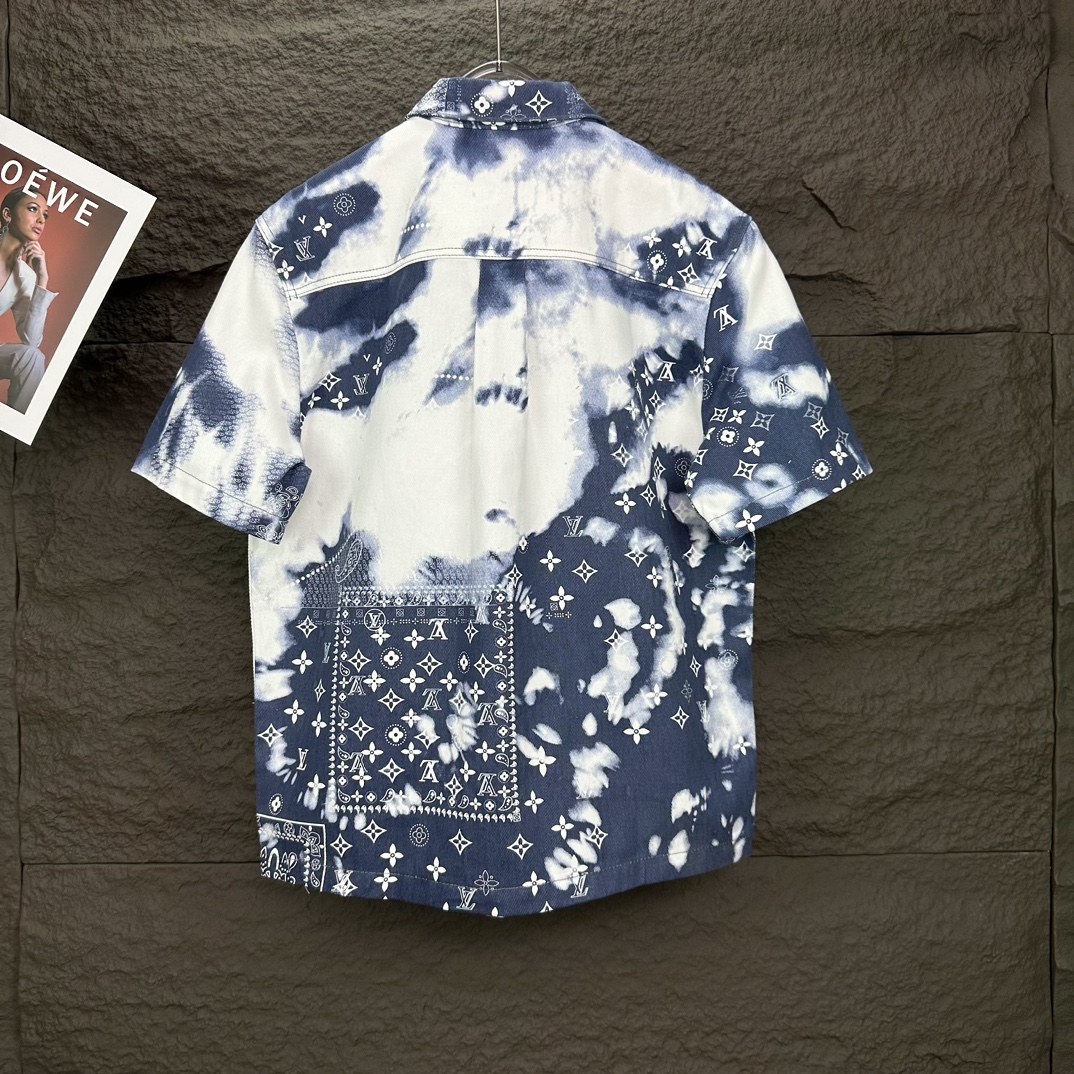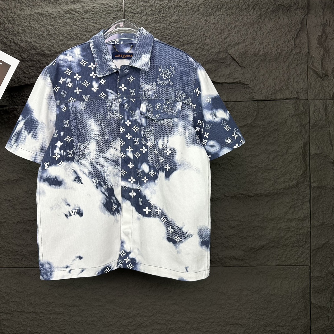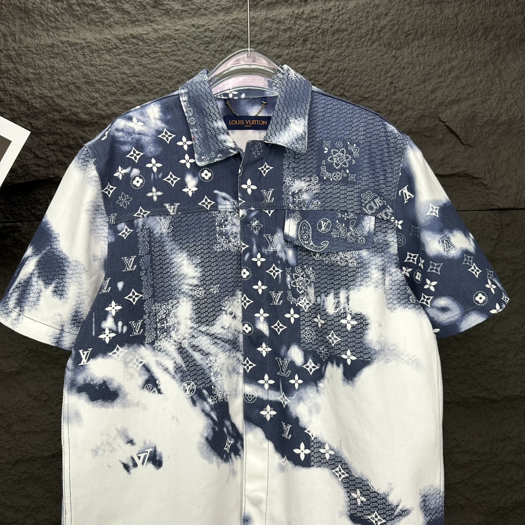 루이비통의 아이코닉한 모노그램 패턴과 예술적인 타이다이(Tie-dye) 기법이 결합된 모노그램 반팔 데님 셔츠를 소개합니다.