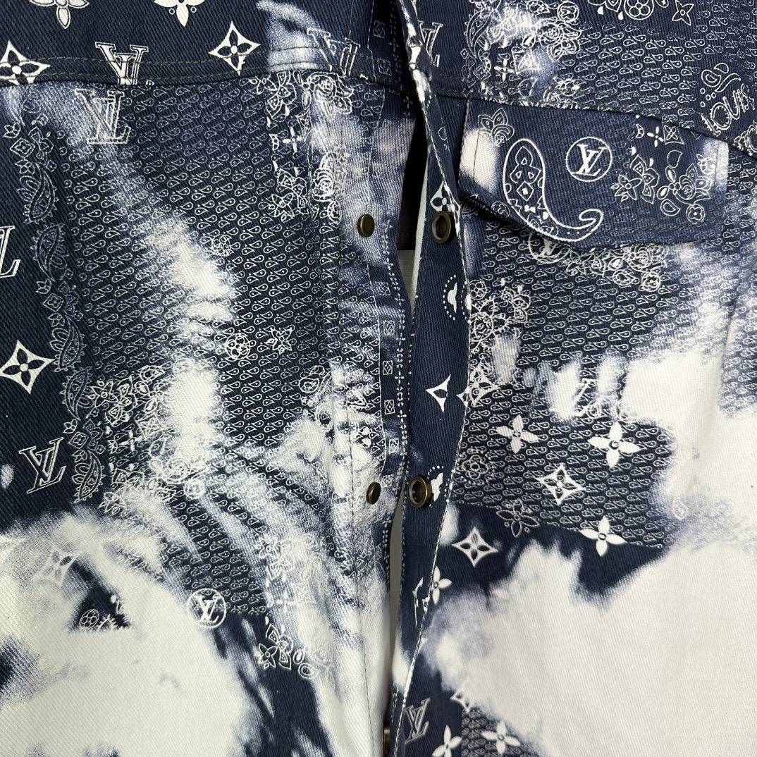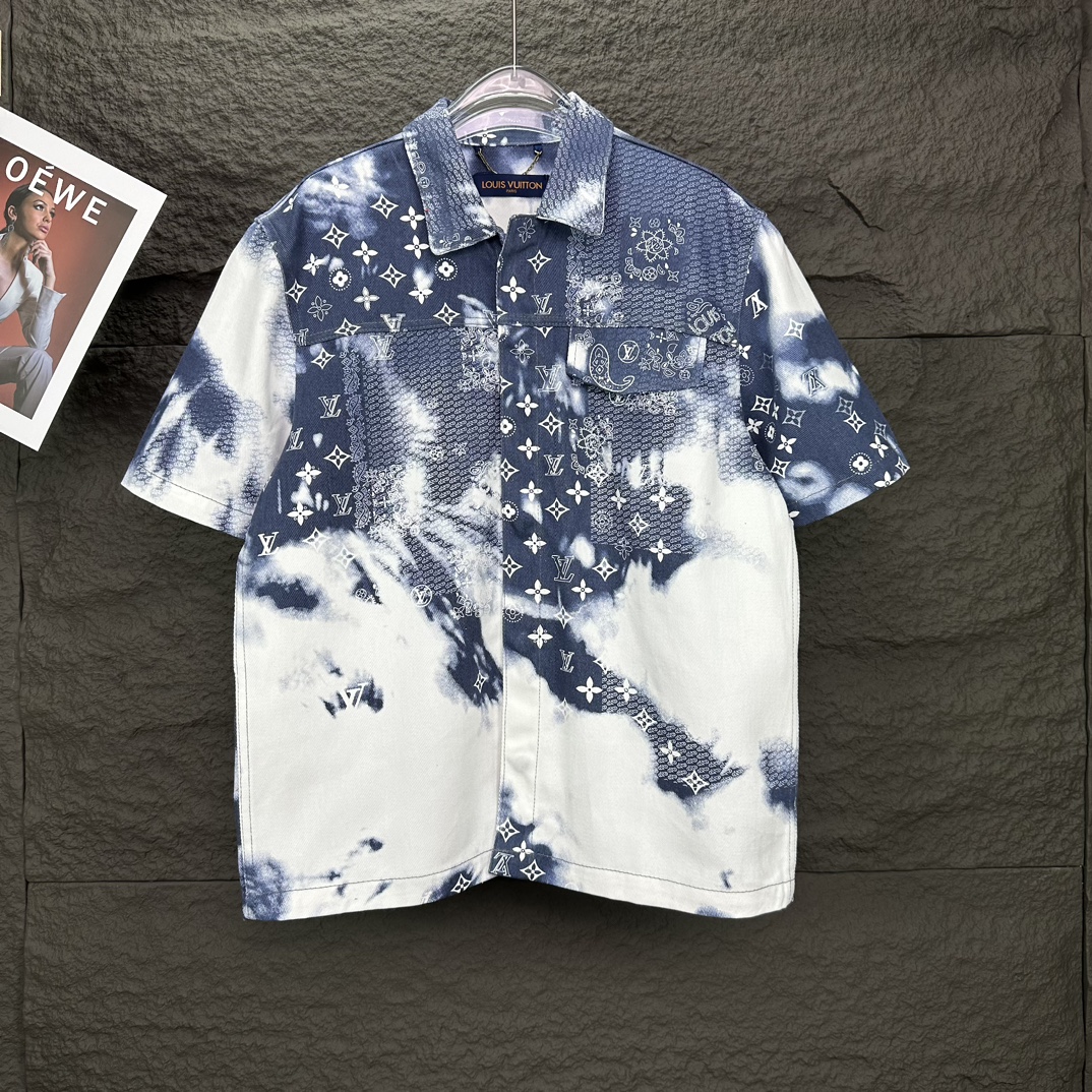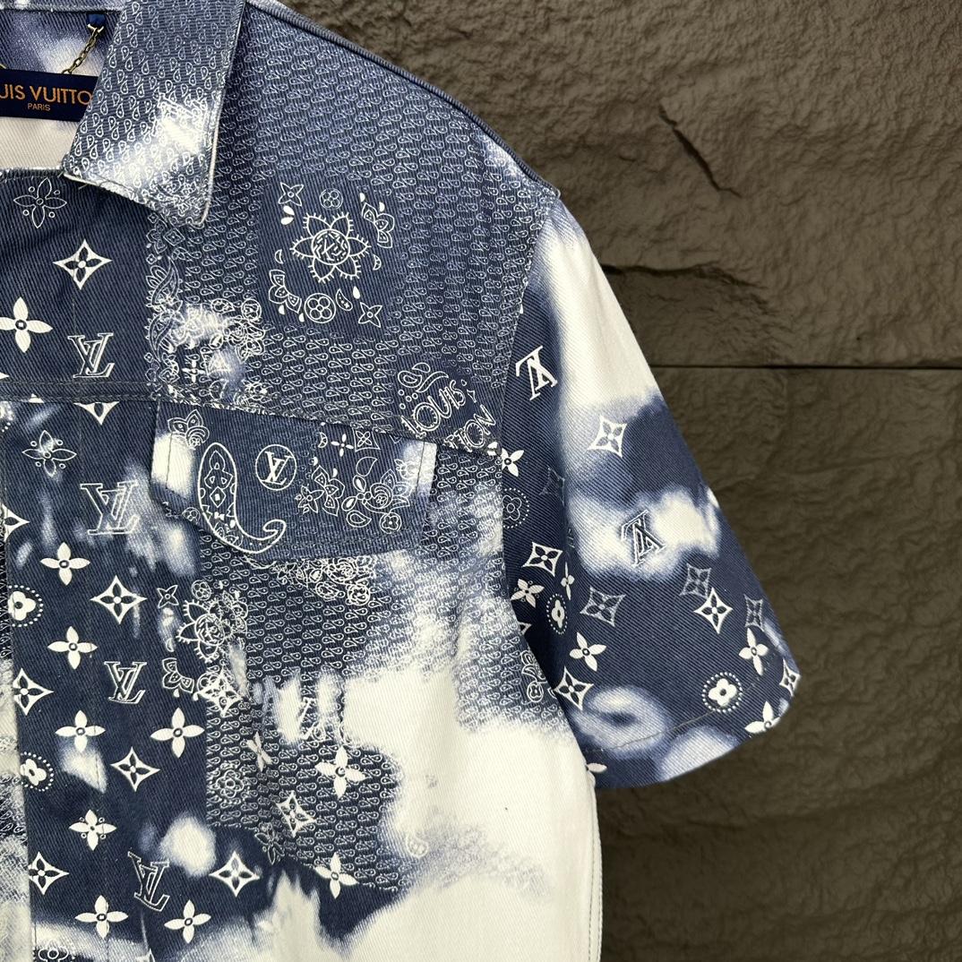 루이비통의 아이코닉한 모노그램 패턴과 예술적인 타이다이(Tie-dye) 기법이 결합된 모노그램 반팔 데님 셔츠를 소개합니다.