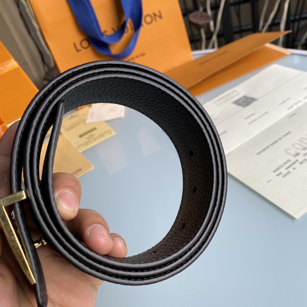 버클은 밝은 실버 컬러의 LV 이니셜 버클을 적용했습니다.