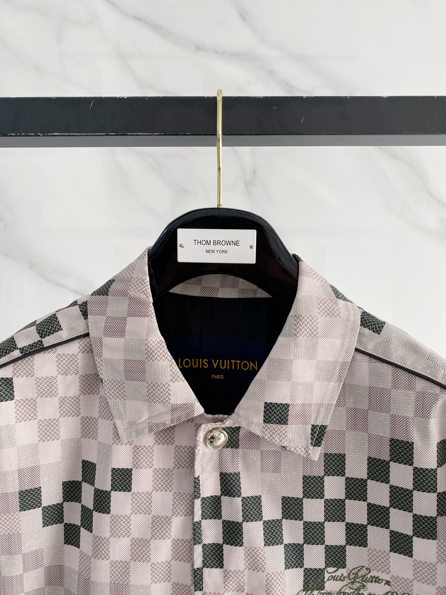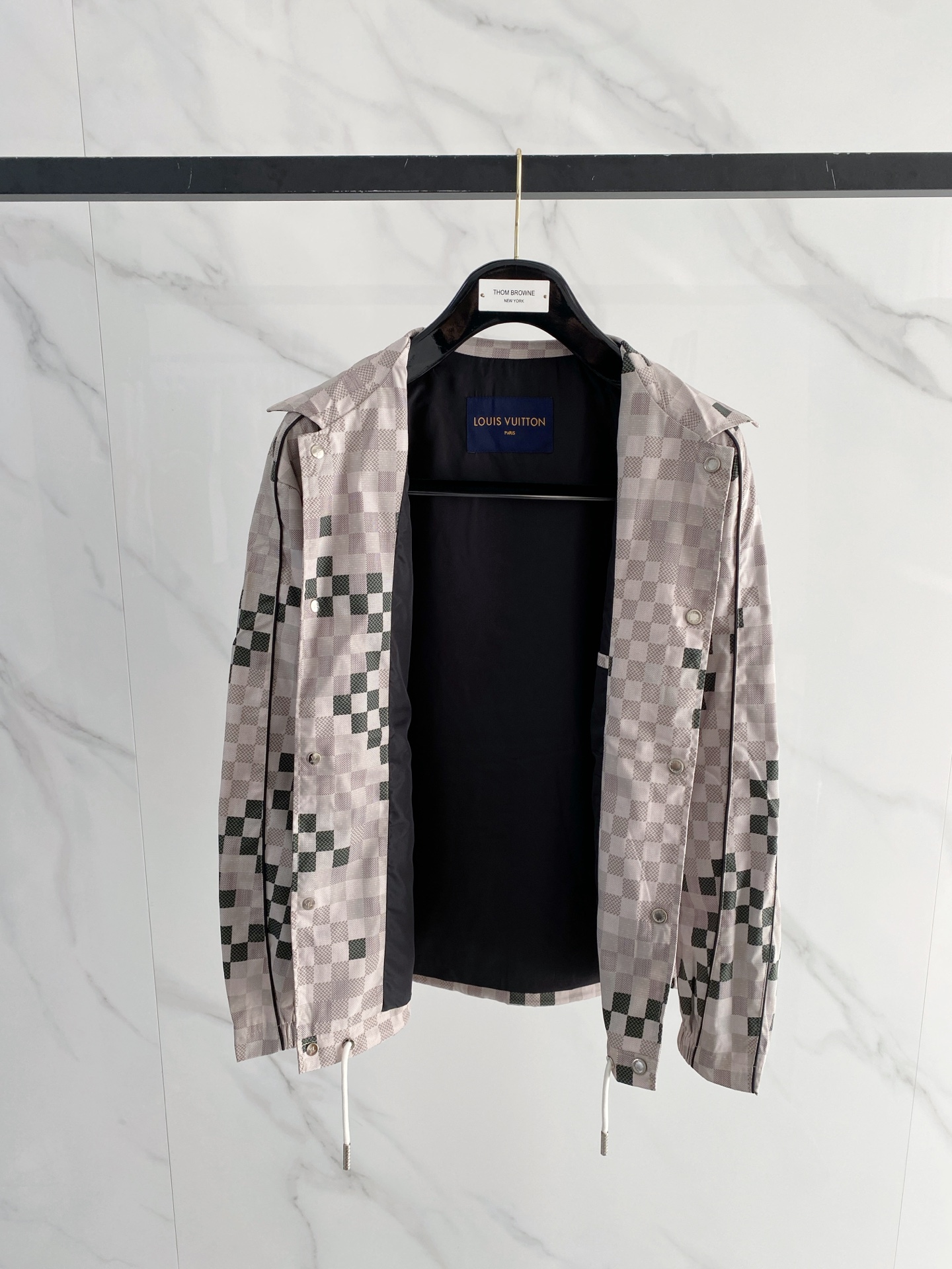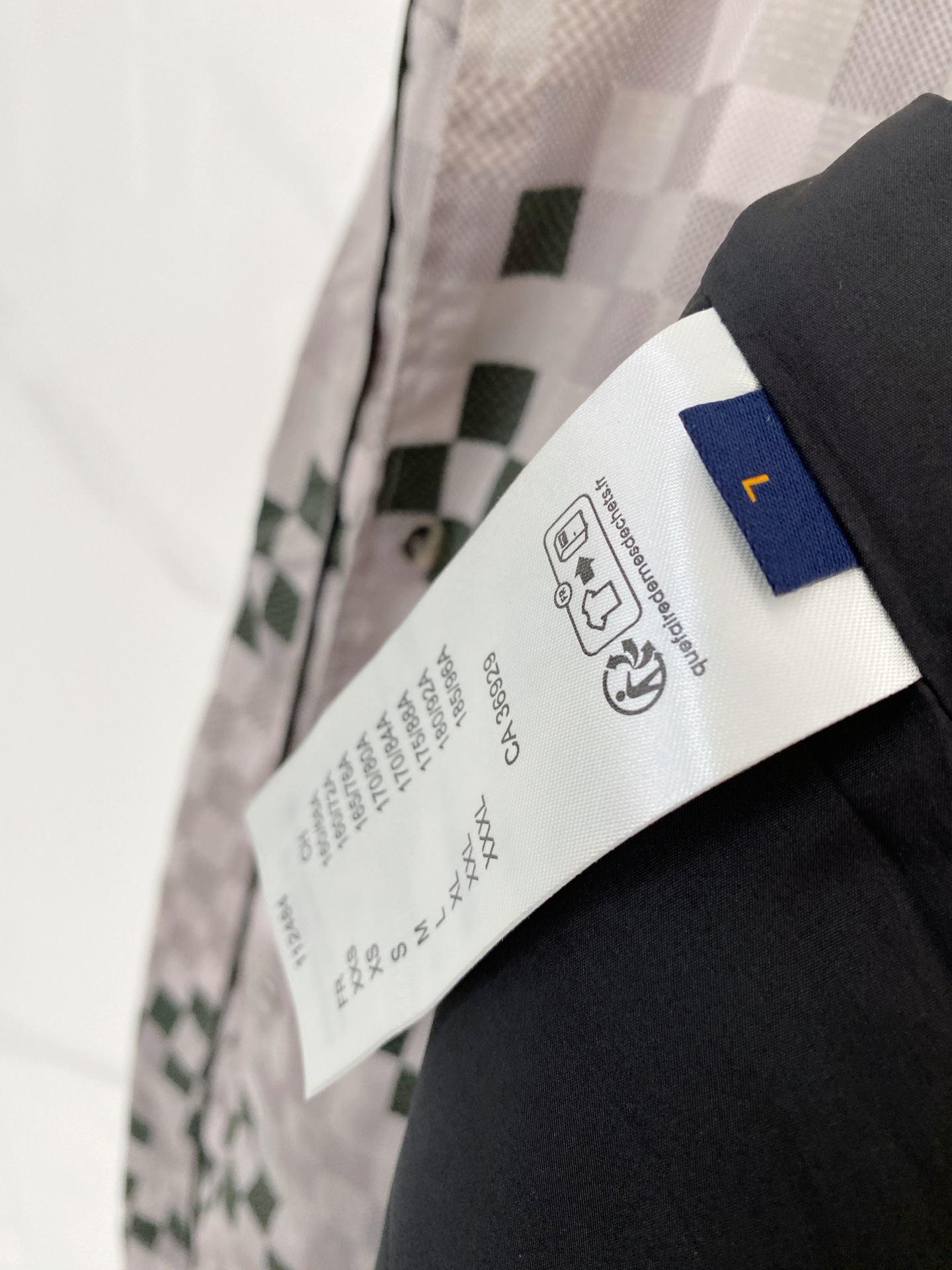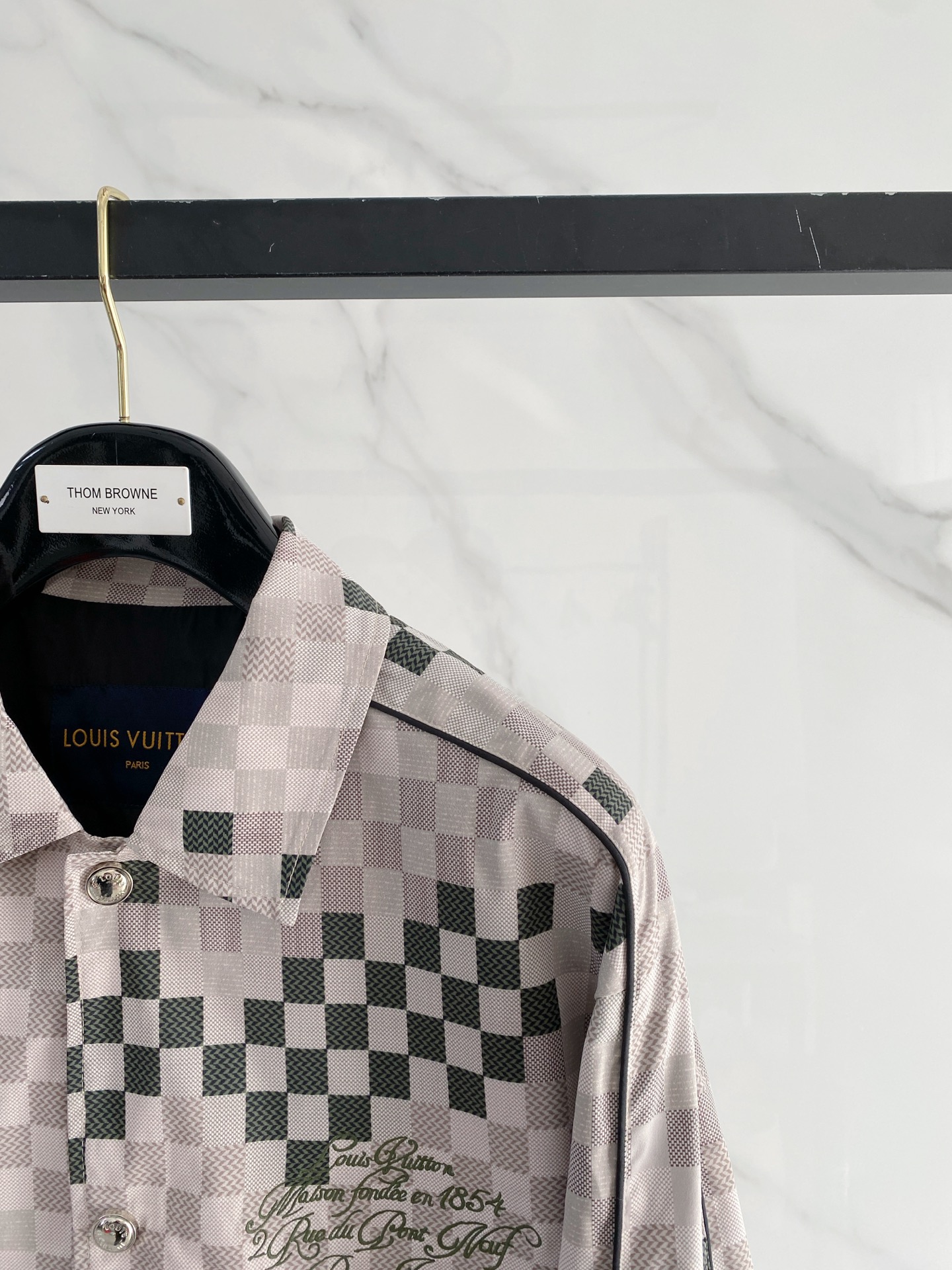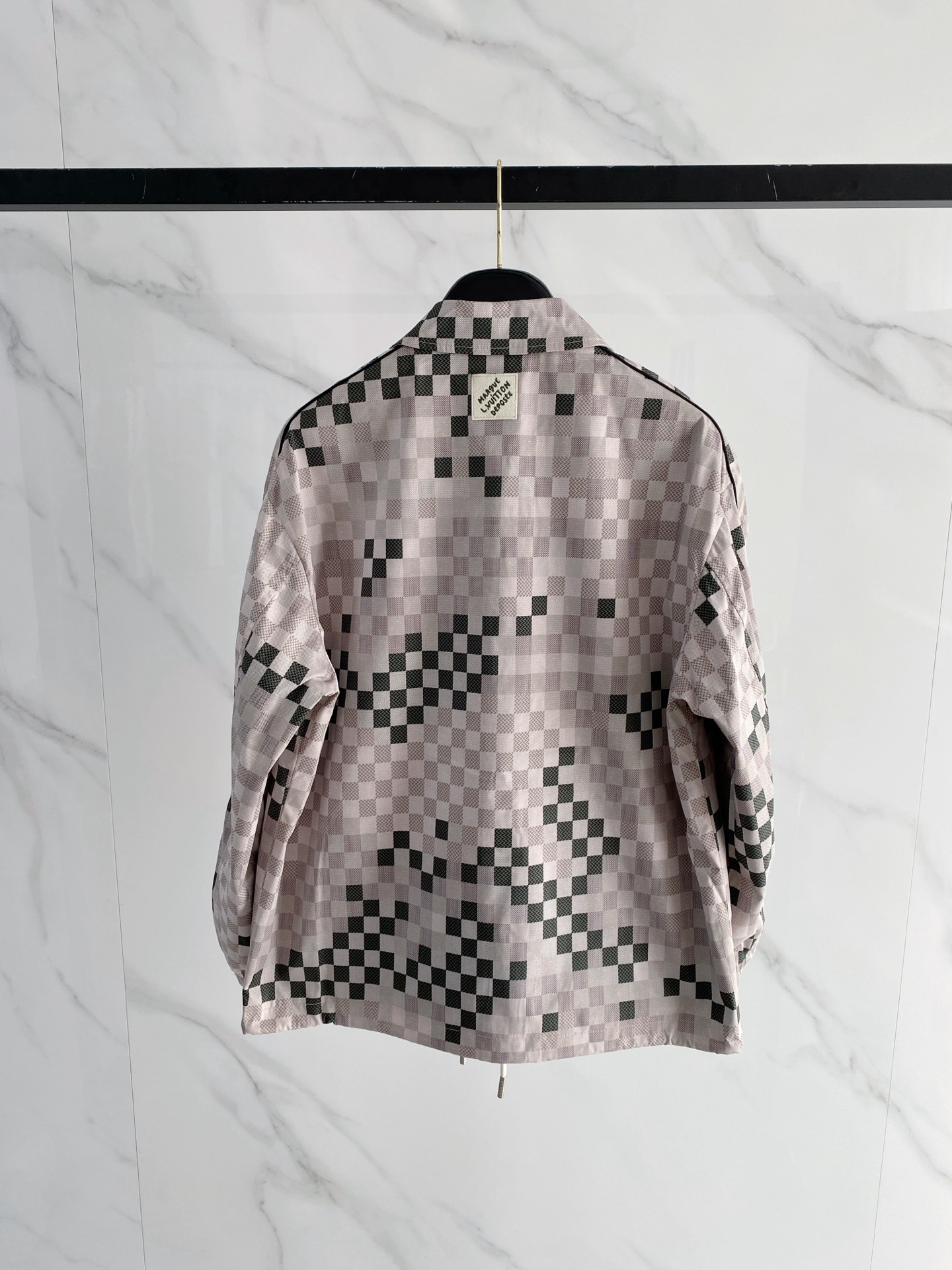 프랑스 럭셔리 하우스 루이비통(Louis Vuitton)의 아이코닉한 다미에 패턴을 현대적인 픽셀 아트로 재해석한 다미에 팝(Damier Pop) 워크 자켓입니다.