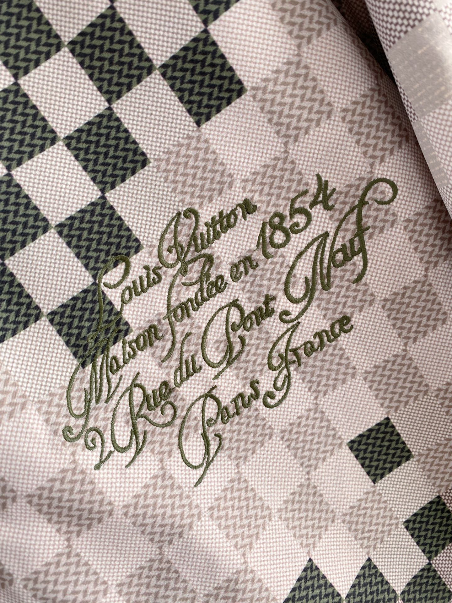 그라데이션과 픽셀 디테일이 조화를 이룬 유니크한 패턴 위에 가슴 부분의 ‘Louis Vuitton Marque Déposée’ 시그니처 자수가 하이엔드 감성을 더해줍니다.