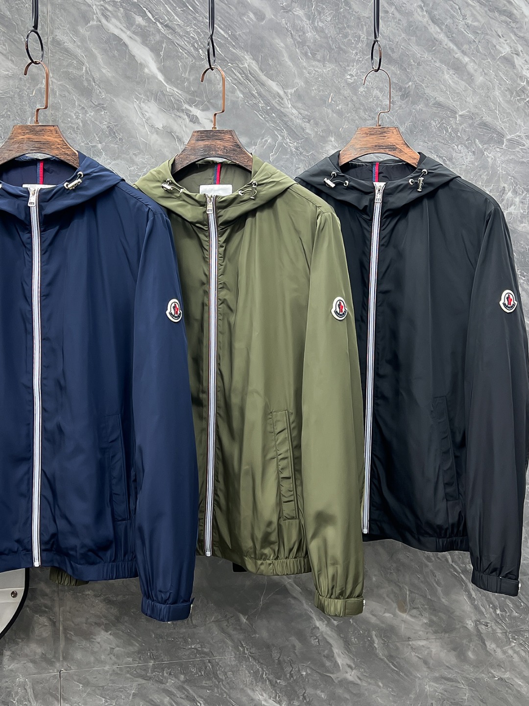 몽클레르(Moncler)의 스테디셀러 디자인인 그림페르 삼색 라인 후드 바람막이입니다.
