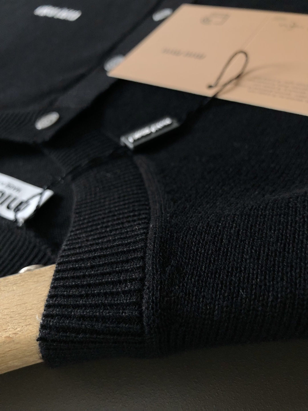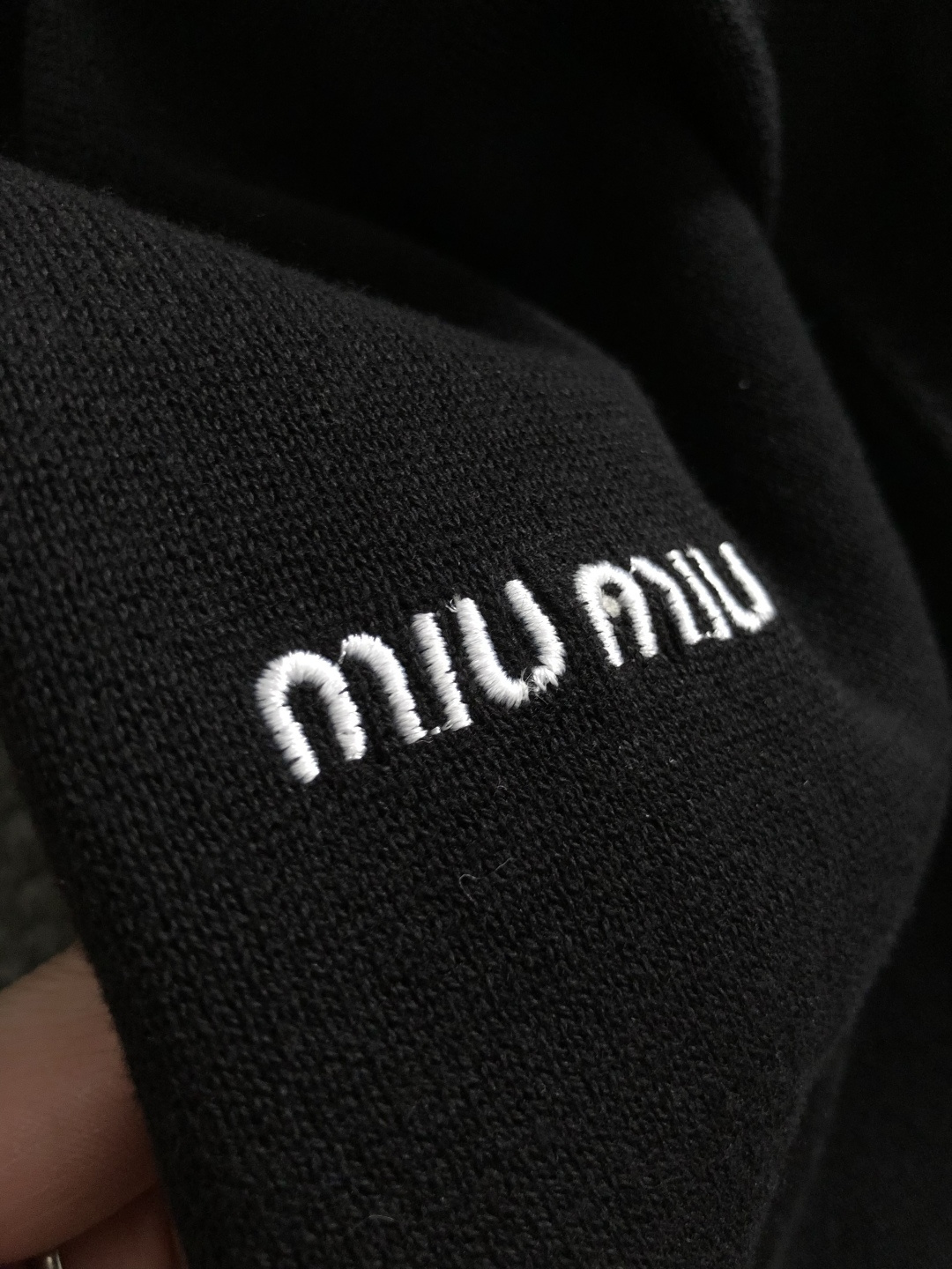 깊이감 있는 블랙 바디에 화이트 컬러의 ‘miu miu’ 자수 로고가 가슴 중앙에 배치되어 은은하면서도 확실한 브랜드 아이덴티티를 보여줍니다.