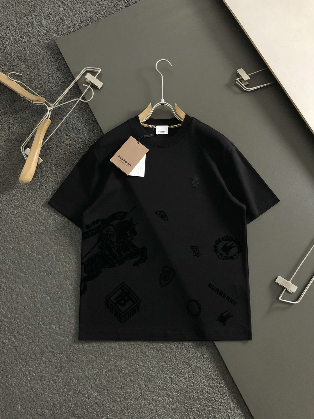 정교한 자카드 또는 고퀄리티 프린팅 기법으로 입체감을 살렸으며, 부드러운 프리미엄 코튼 소재가 선사하는 안락한 착용감이 특징입니다. 단독 착용만으로도 럭셔리한 스트릿 무드를 완성할 수 있는 버버리의 시즌 핵심 아이템입니다.