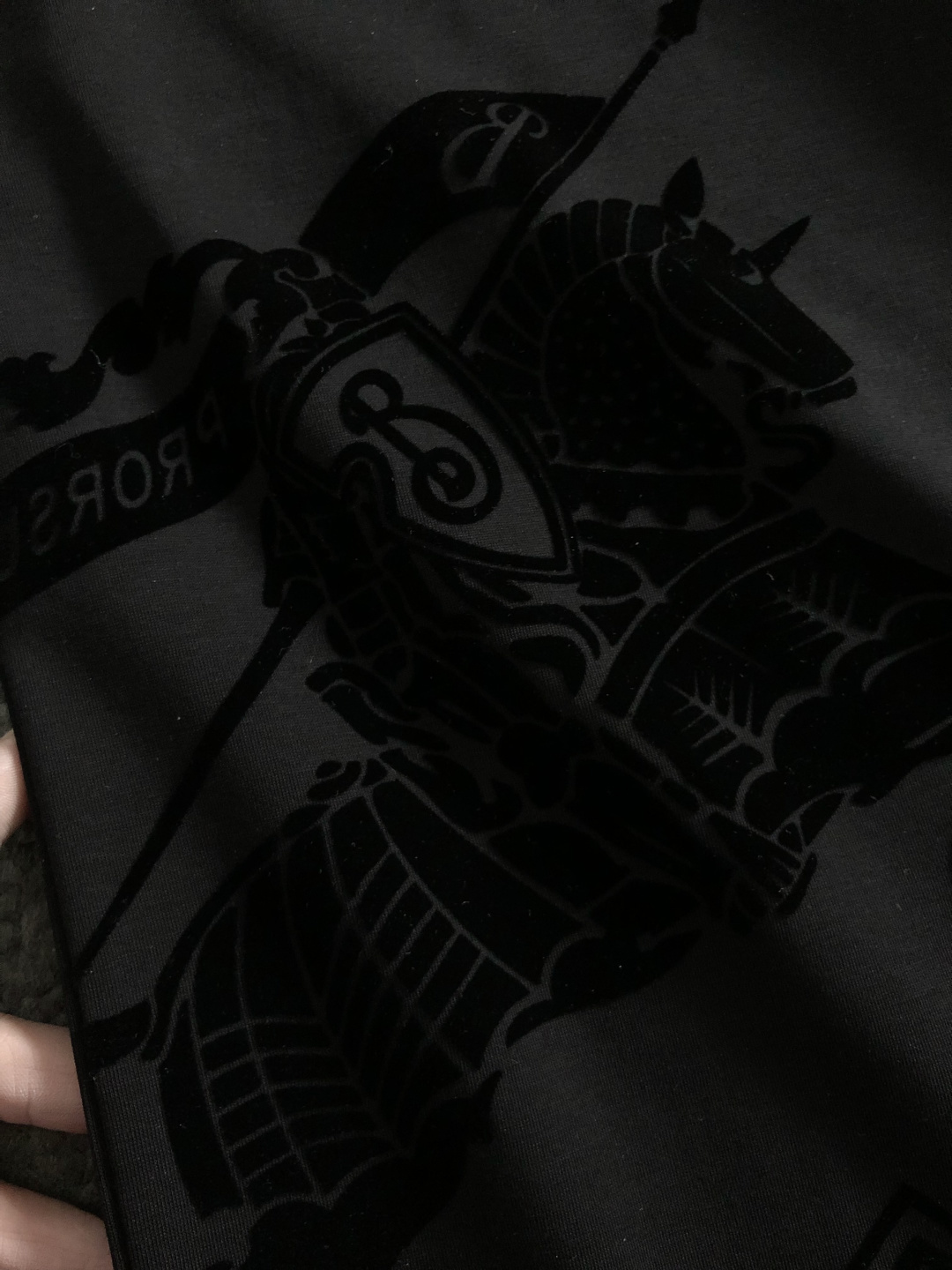 깊이 있는 블랙 바디 위에 에퀘스트리안 나이트(EKD)를 비롯한 다양한 브랜드 심볼들이 톤온톤 그래픽으로 배치되어 세련되면서도 강렬한 존재감을 드러냅니다.