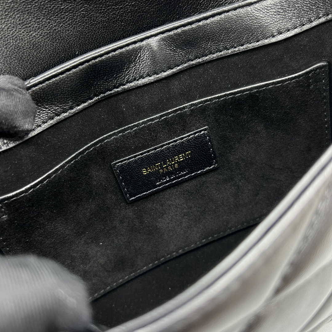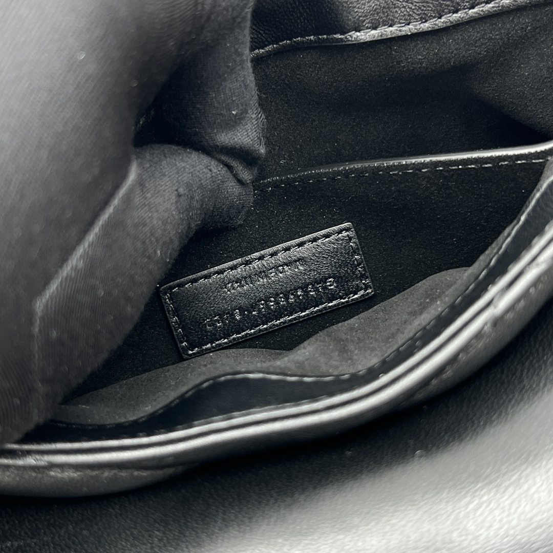 정교한 까레 퀼팅 오버스티치 장식과 전면의 아이코닉한 YSL 시그니처 로고가 세련된 분위기를 자아냅니다.