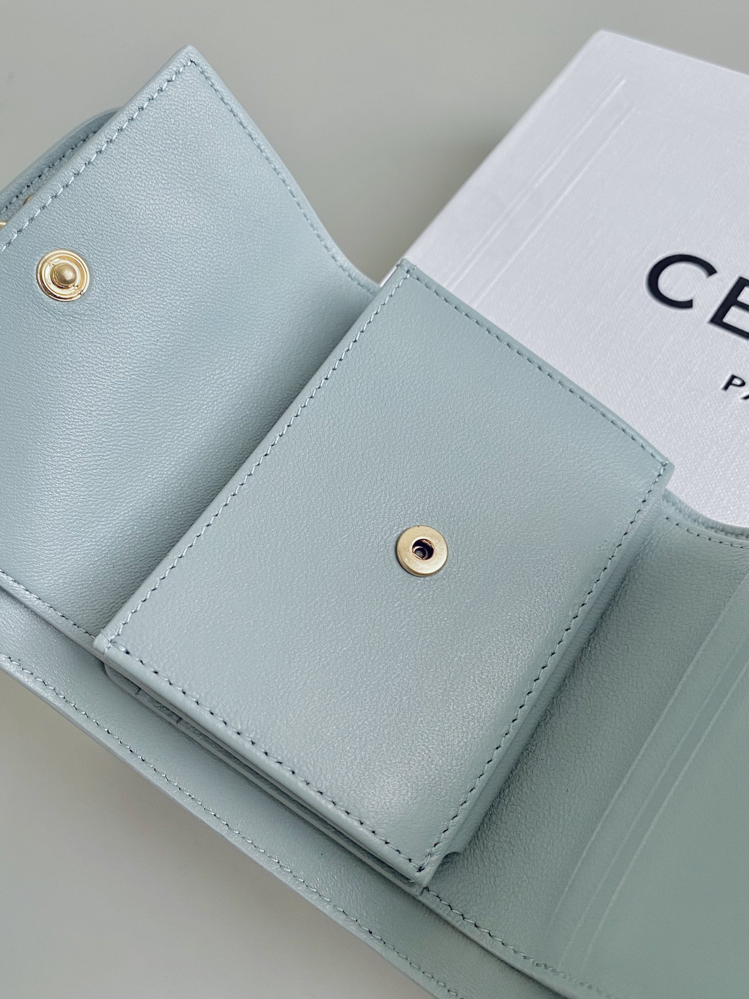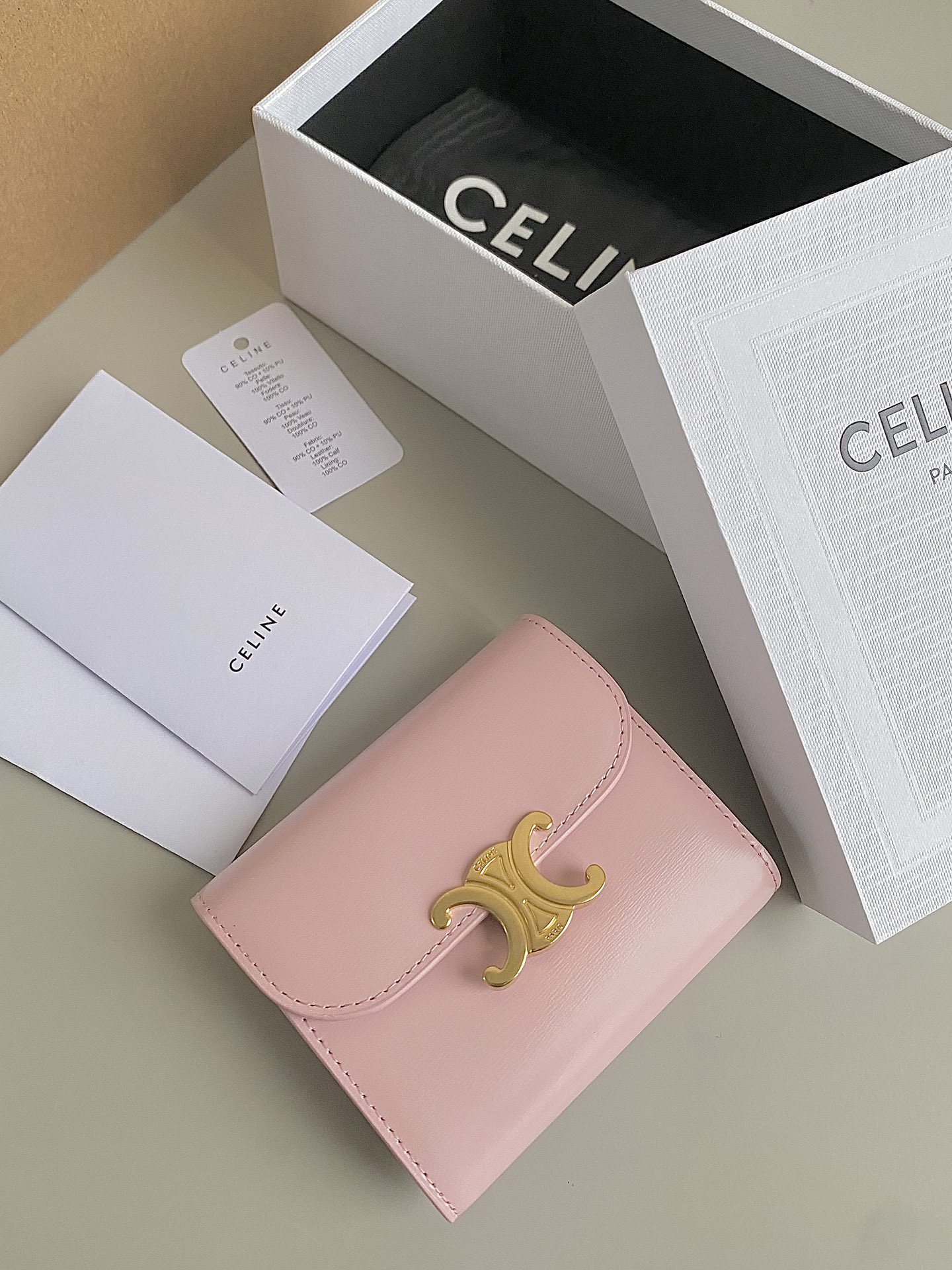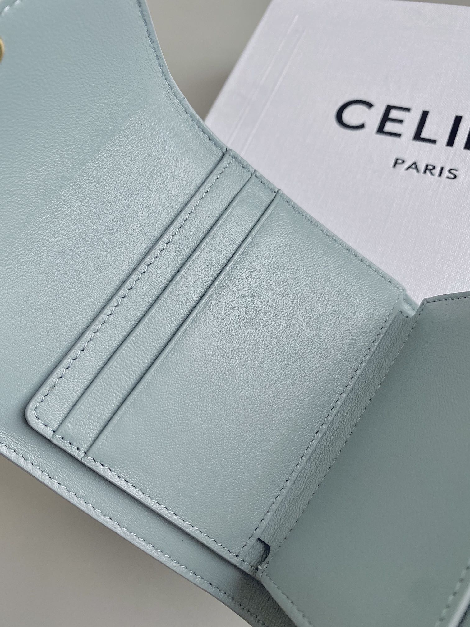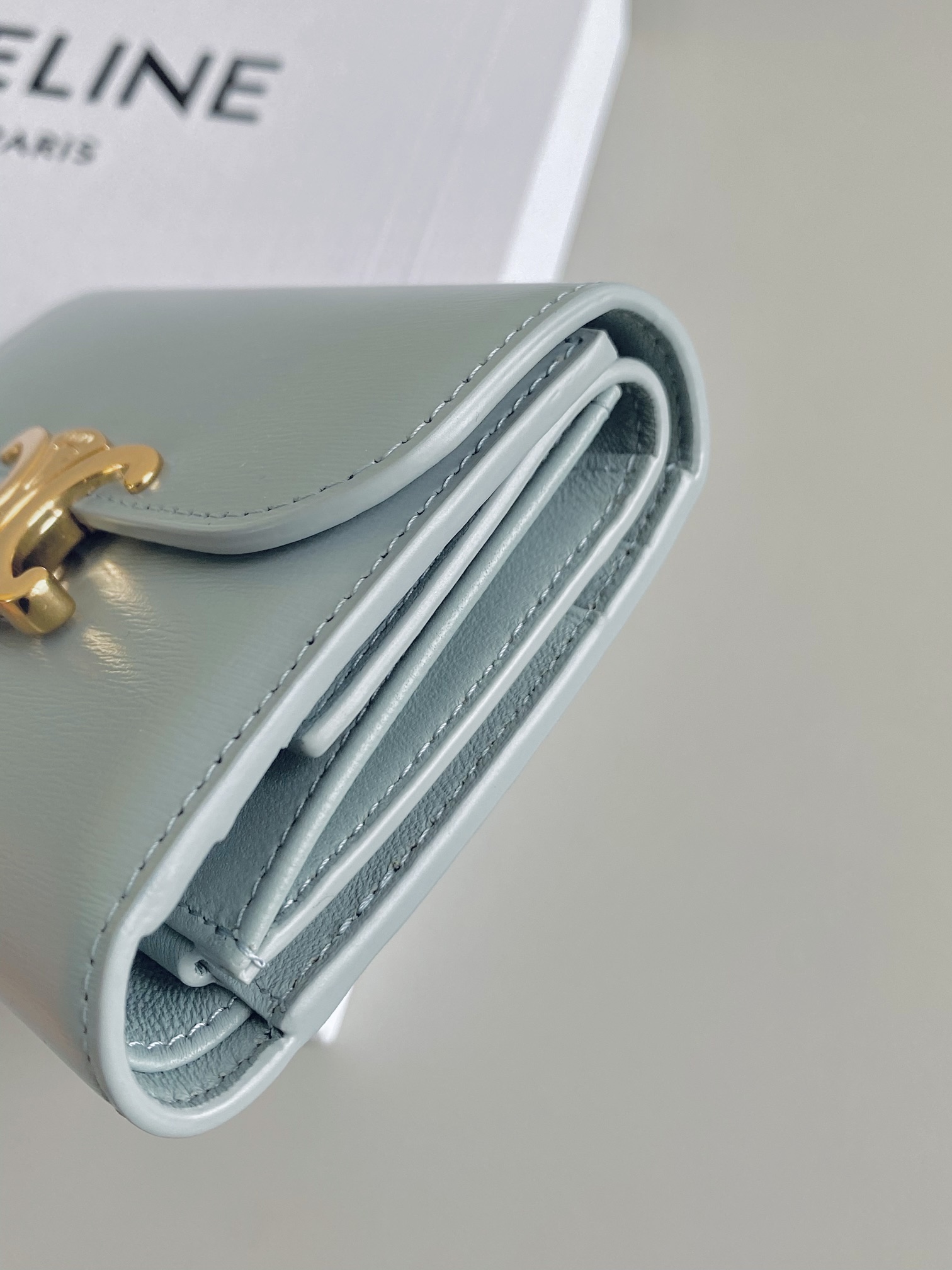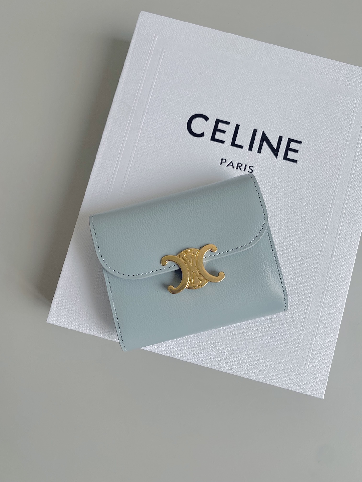 셀린느의 고전적인 우아함이 돋보이는 스몰 플랩 트리옹프 지갑입니다.