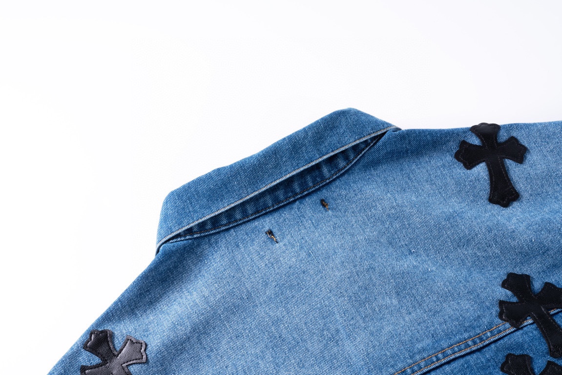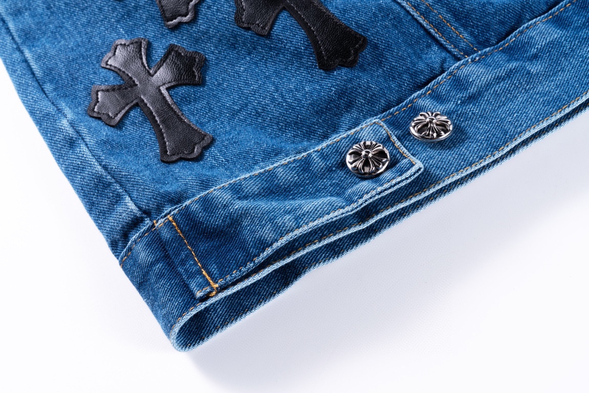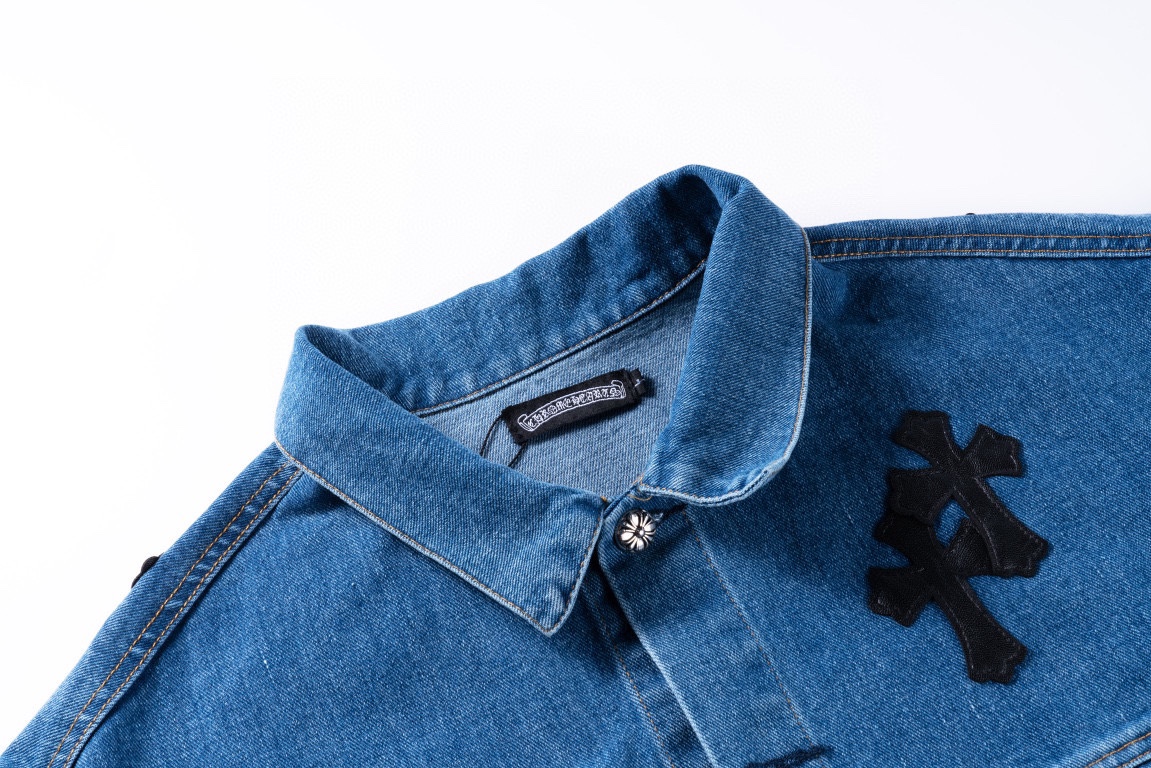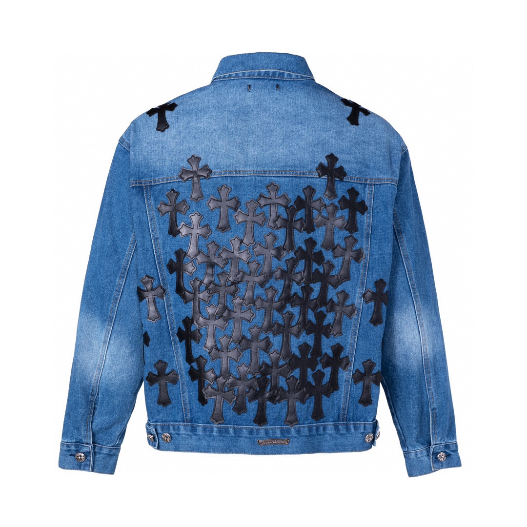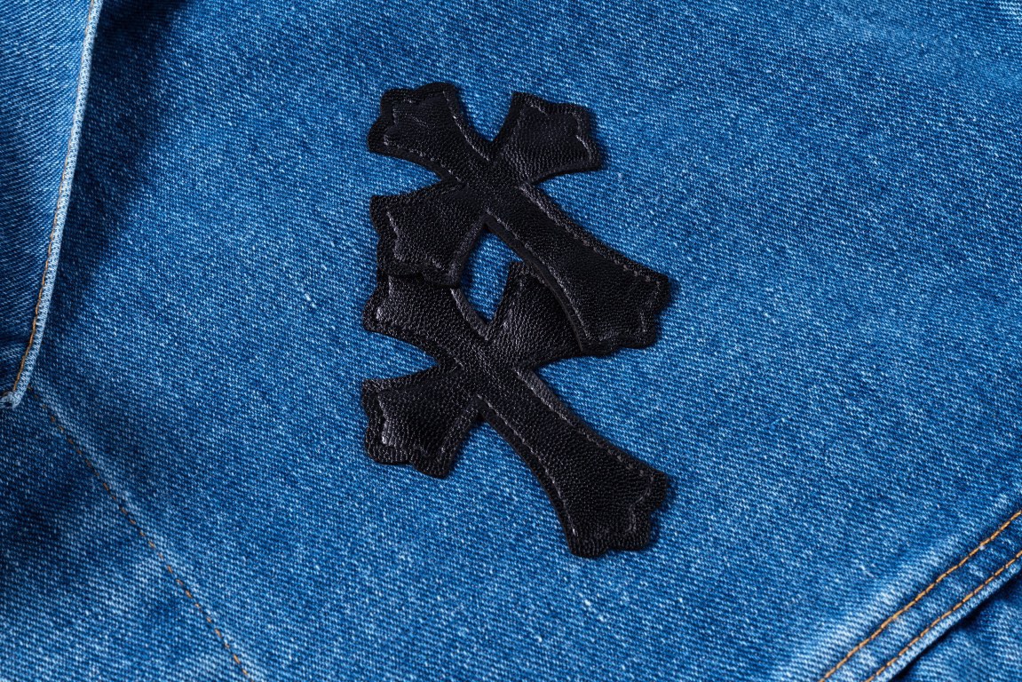 프리미엄 워싱 데님 원단을 사용한 십자가 패치 디테일 청자켓입니다.