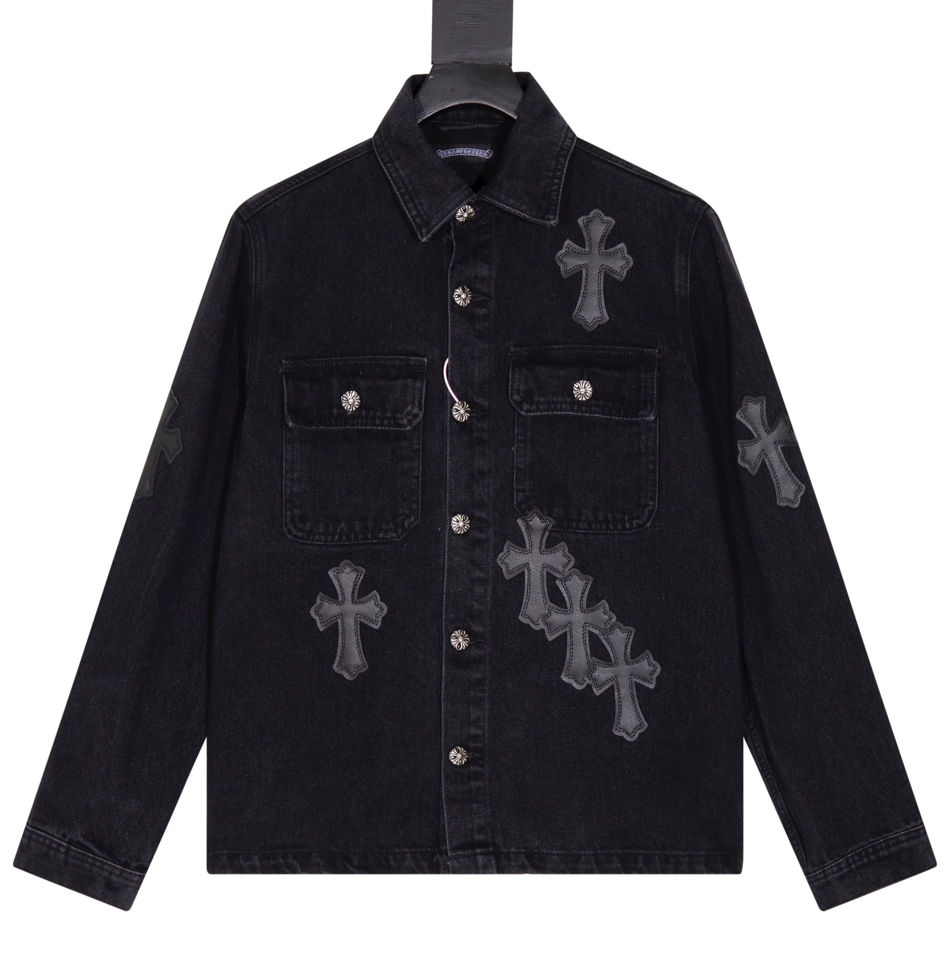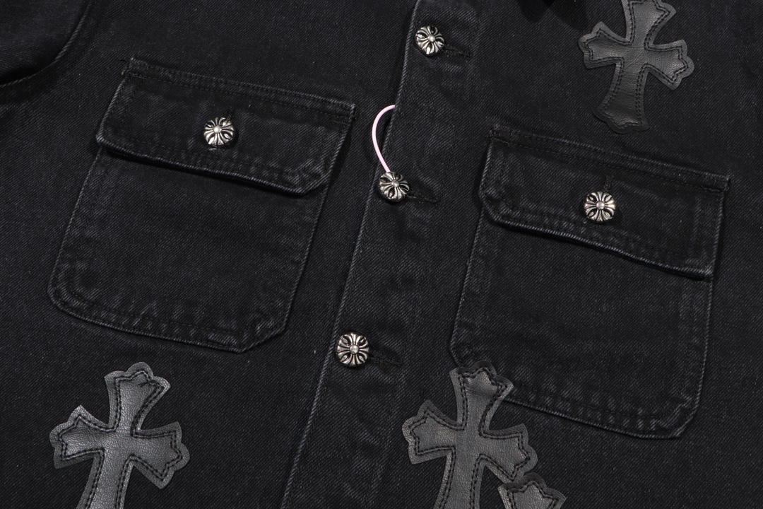| 상품명 | 십자가 가죽 패치 블랙 데님 재킷 |