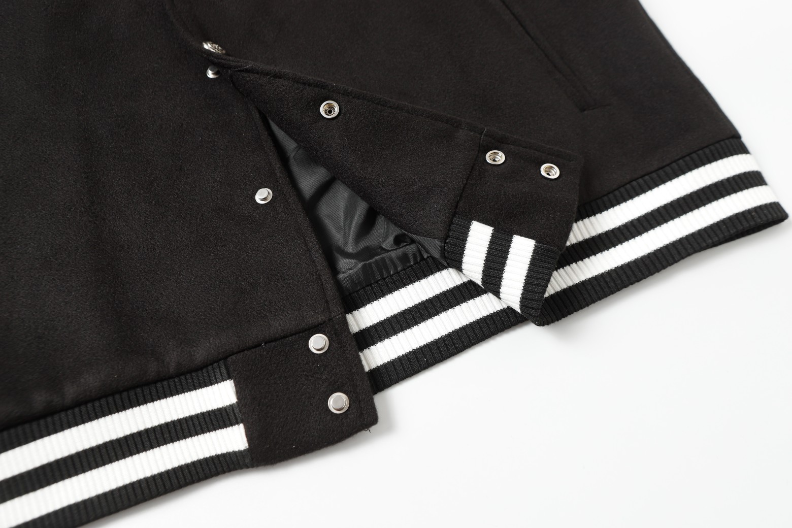 가죽 패치 디테일이 적용된 프리미엄 베이스볼 자켓입니다.