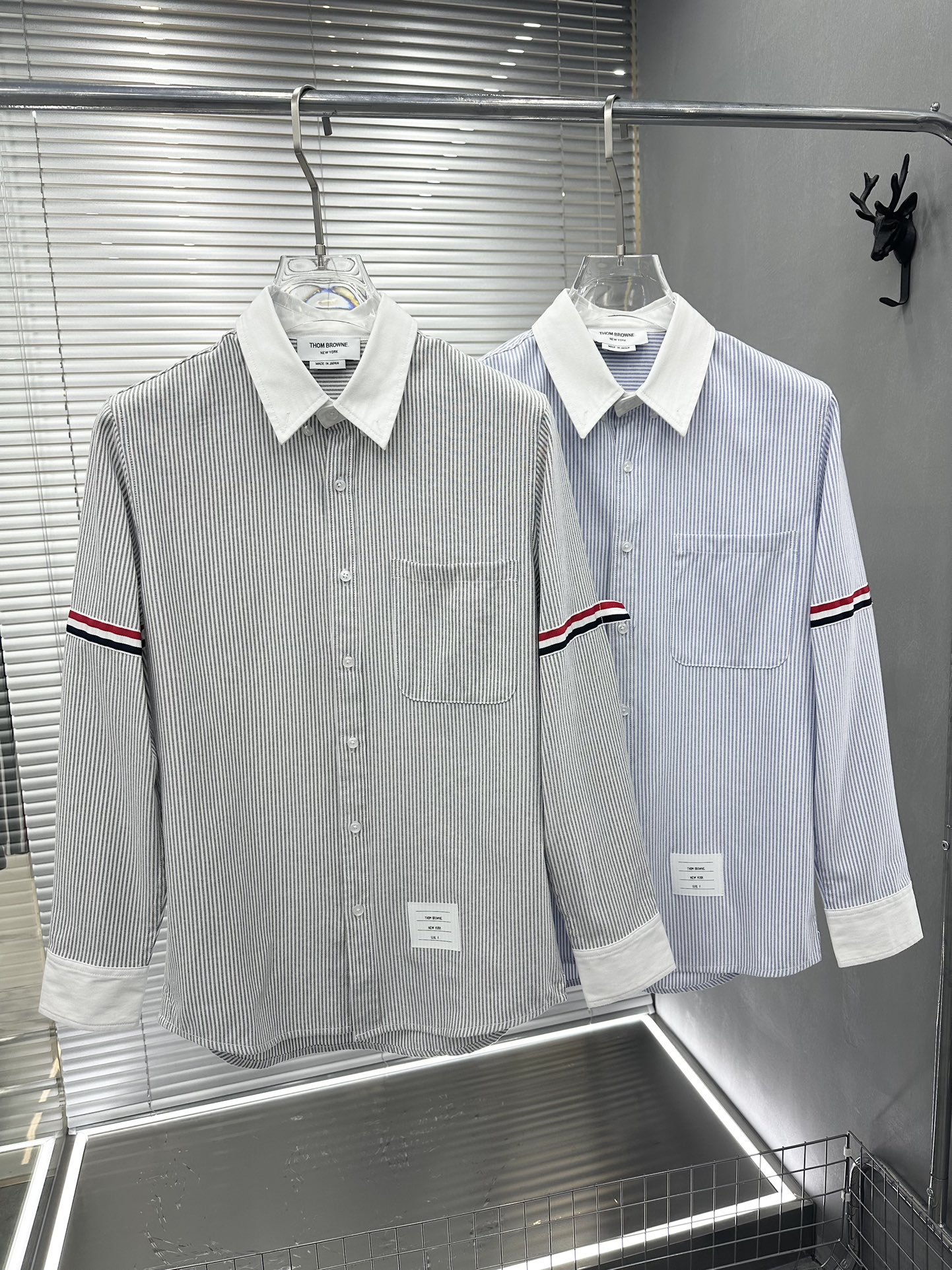 톰브라운(Thom Browne)의 스트라이프 암밴드 버튼다운 셔츠