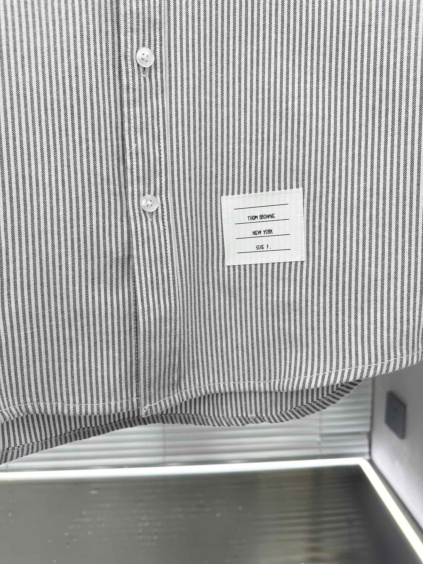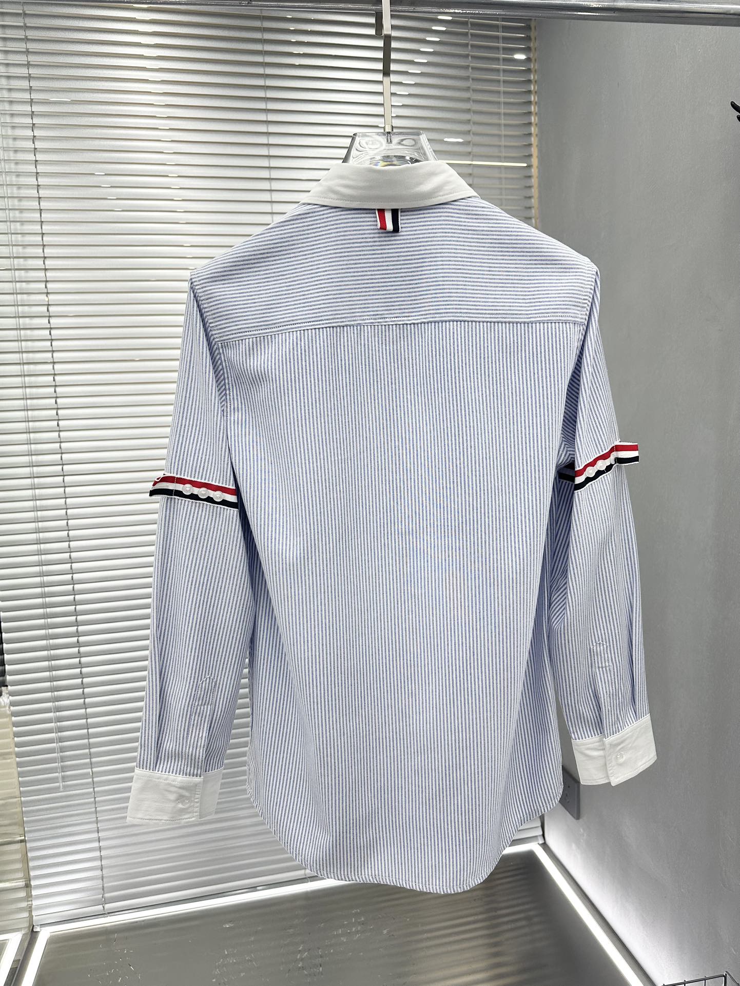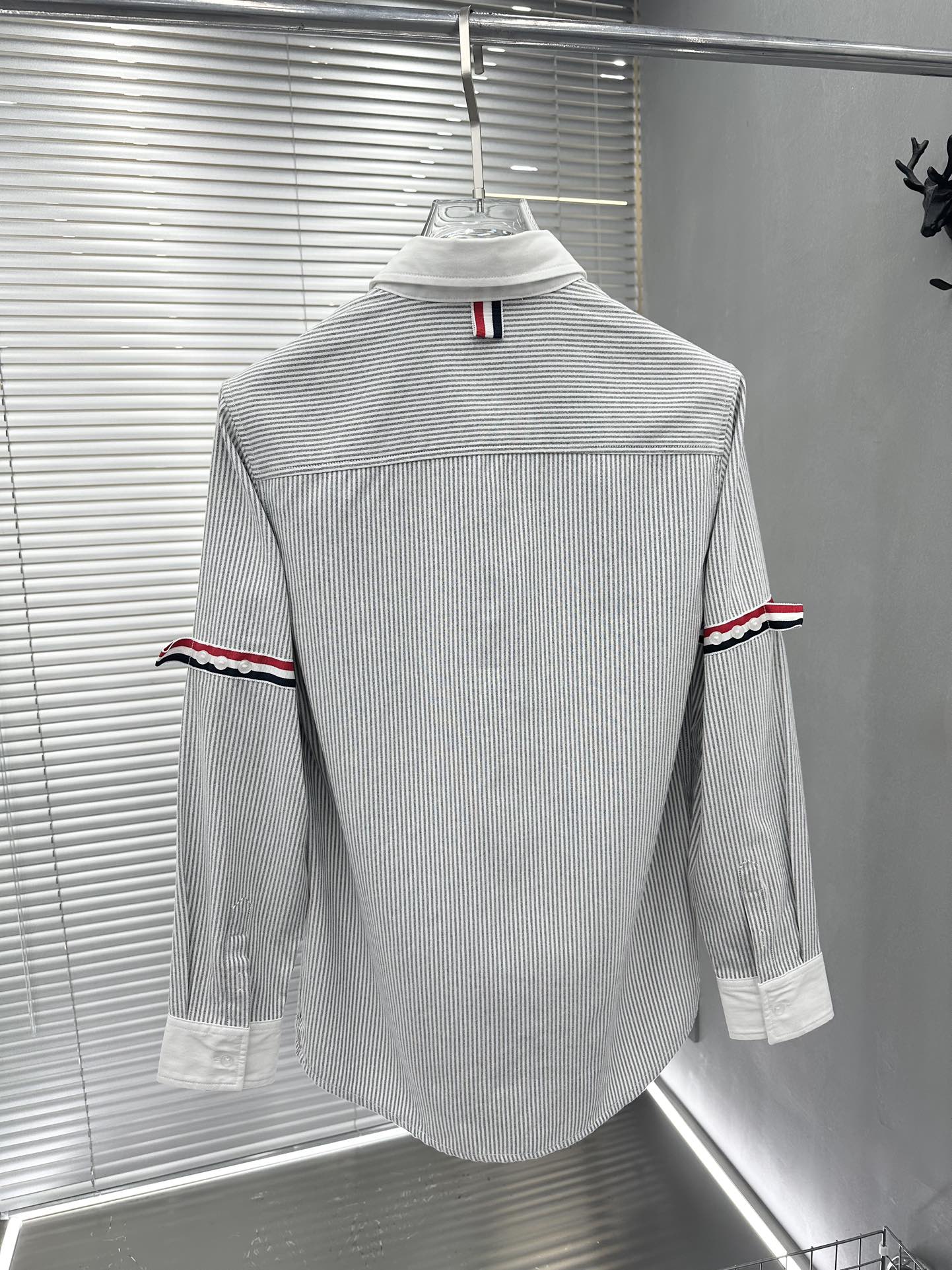 톰브라운의 클래식한 수트 미학을 캐주얼하게 풀어낸 스트라이프 암밴드 버튼다운 셔츠입니다.