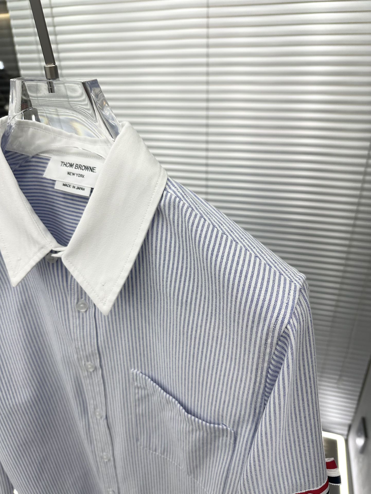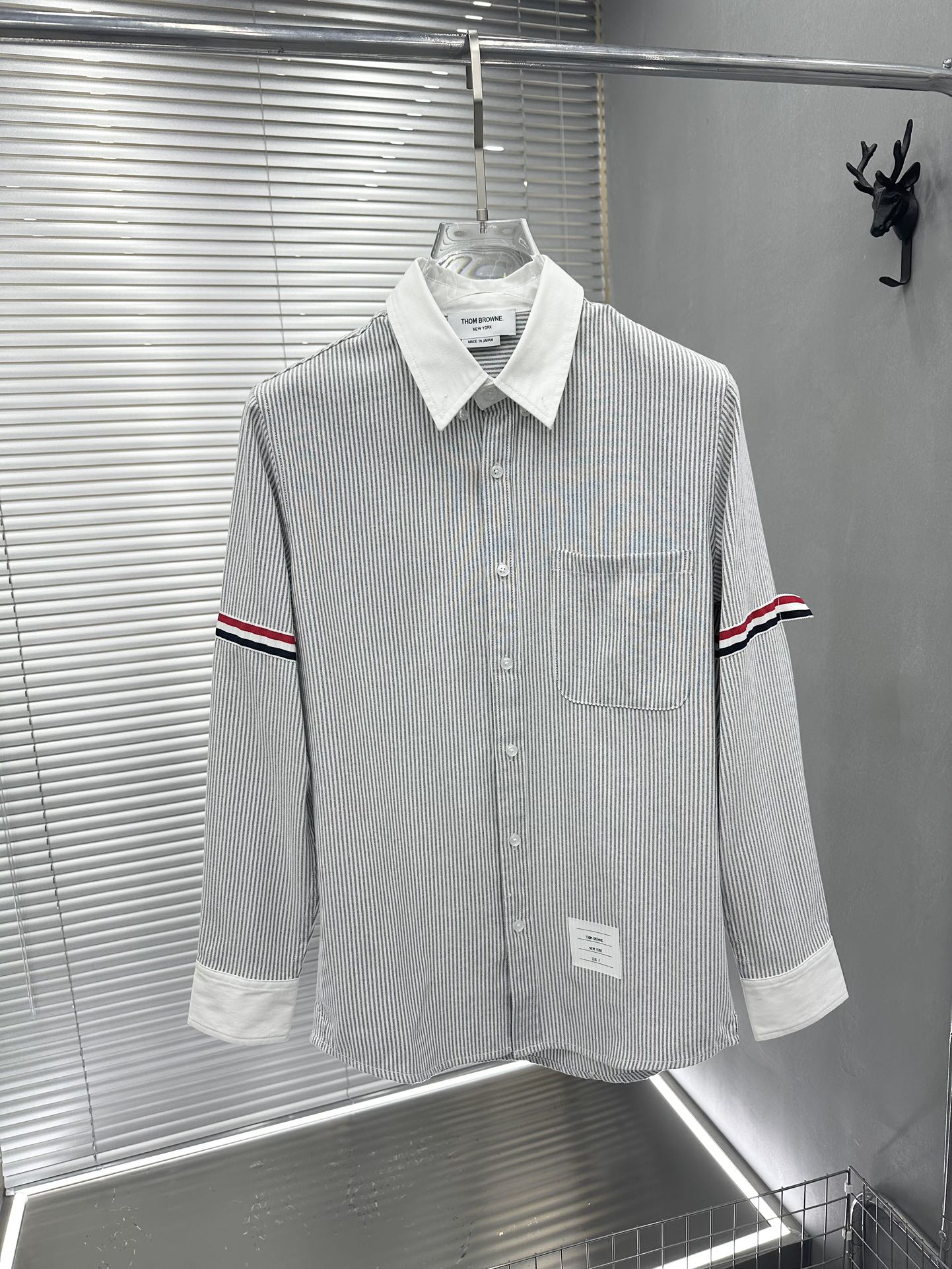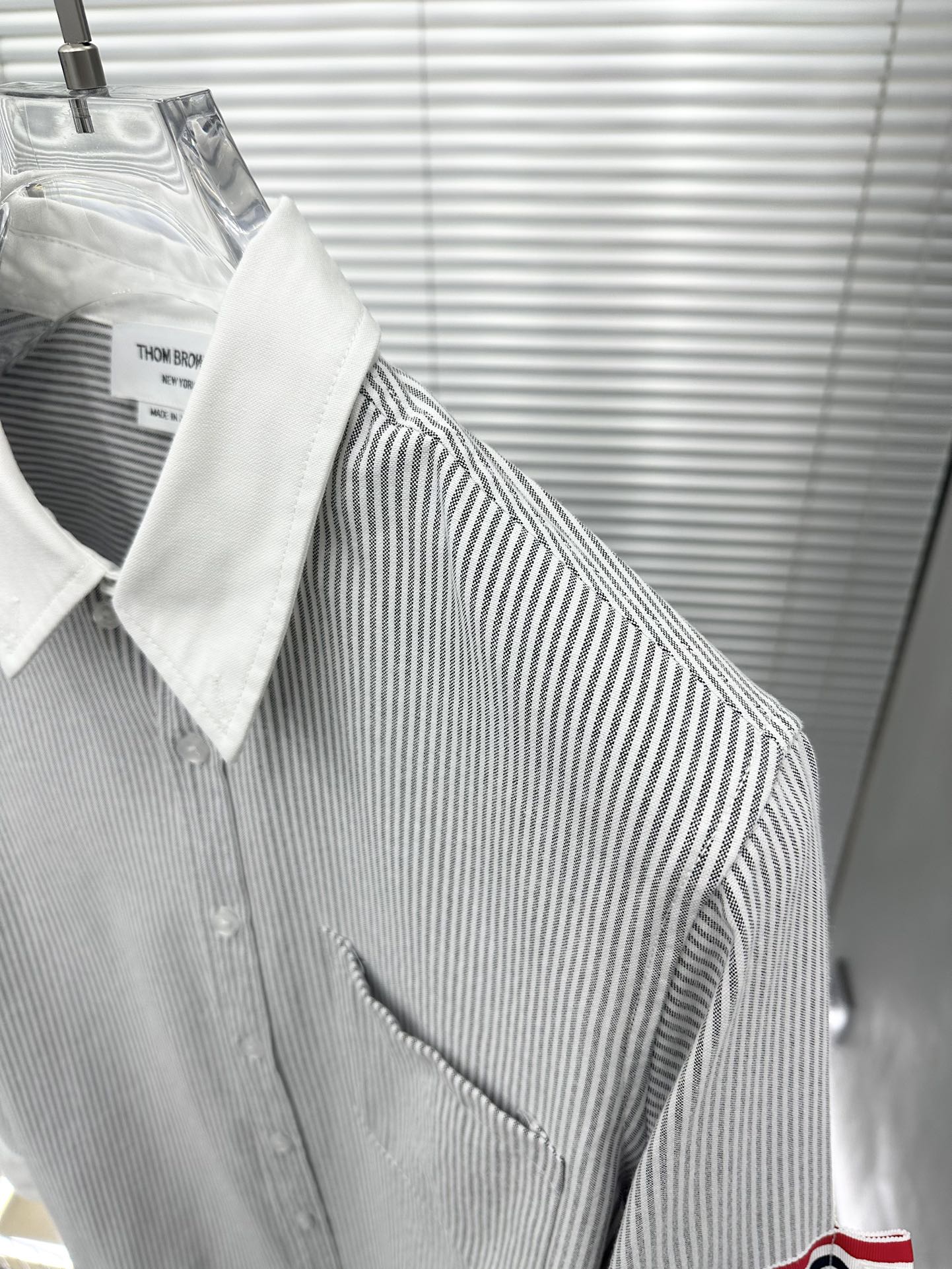 톰브라운의 클래식한 수트 미학을 캐주얼하게 풀어낸 스트라이프 암밴드 버튼다운 셔츠입니다.