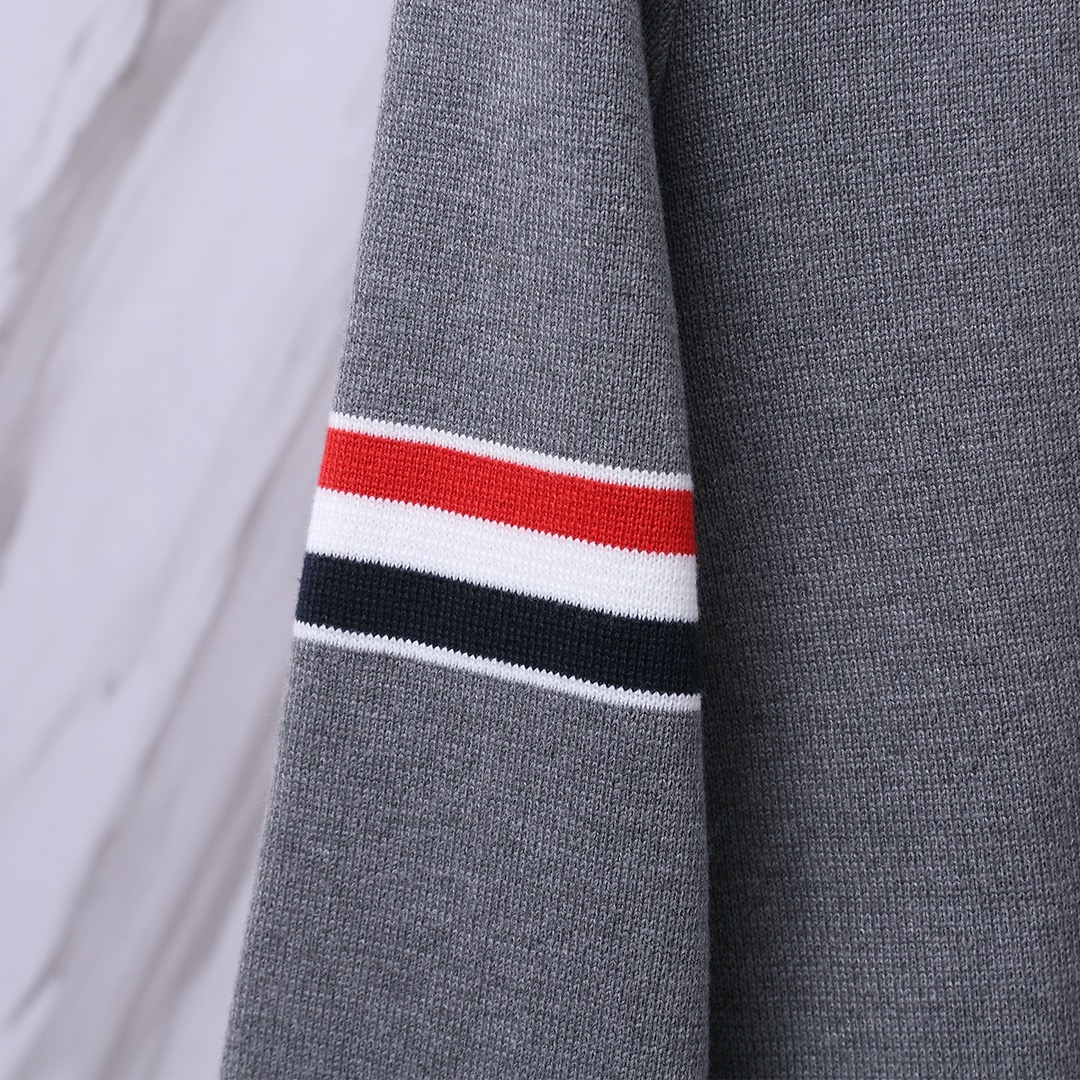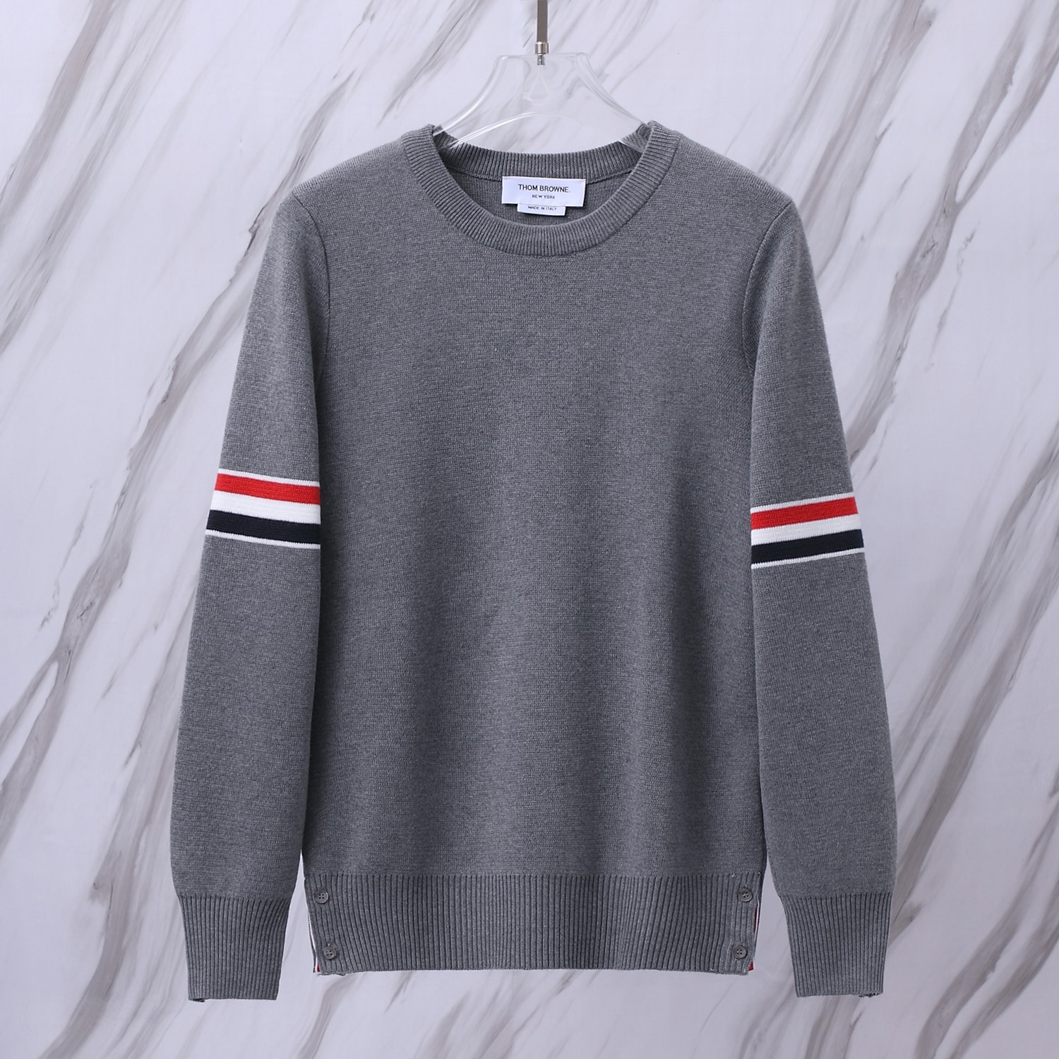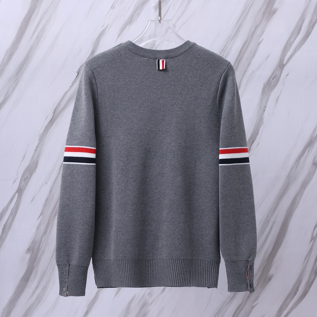 톰브라운(Thom Browne) 스타일 삼색 라인 암밴드 크루넥 니트 그레이