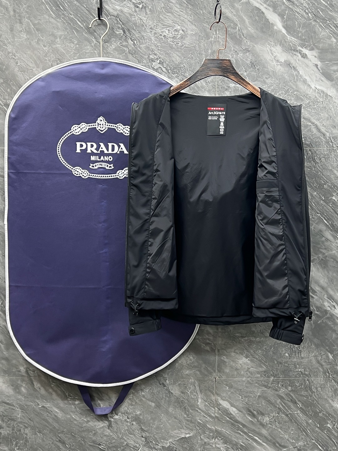 매끄러운 고밀도 방풍 소재는 외부의 찬 바람을 완벽히 차단해주며, 입체적인 후드 라인과 정교한 마감 처리가 돋보입니다. 전용 프라다 수트 케이스가 포함된 풀패키지 구성으로 소장 가치를 높였습니다.