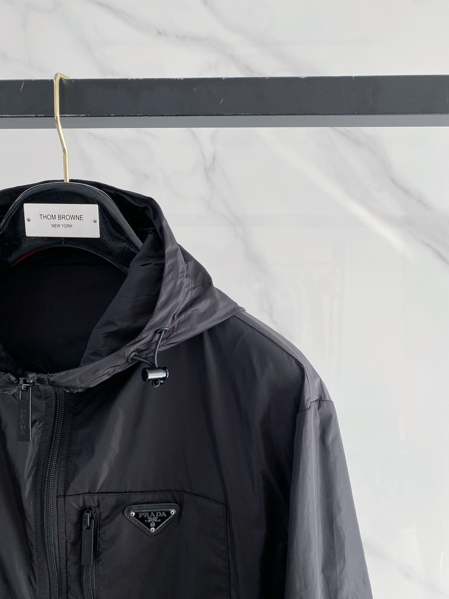 프라다(PRADA)의 혁신적인 리나일론(Re-Nylon) 소재로 제작된 기능성 후드 자켓입니다.