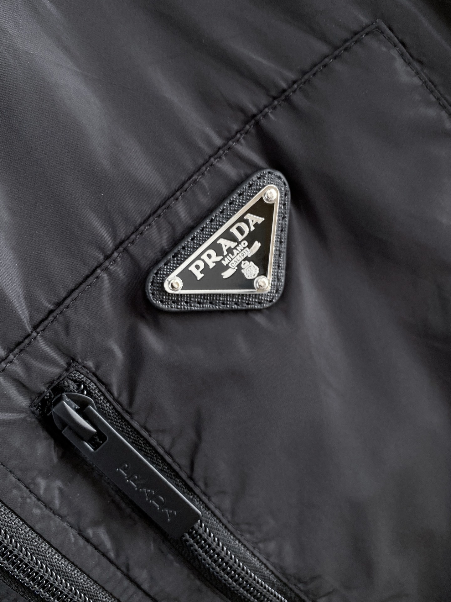 가슴 부분의 세로 지퍼 포켓과 프라다의 상징인 에나멜 메탈 트라이앵글 로고가 조화를 이루어 모던하고 테크니컬한 감성을 극대화한 간절기 필수 아이템입니다.