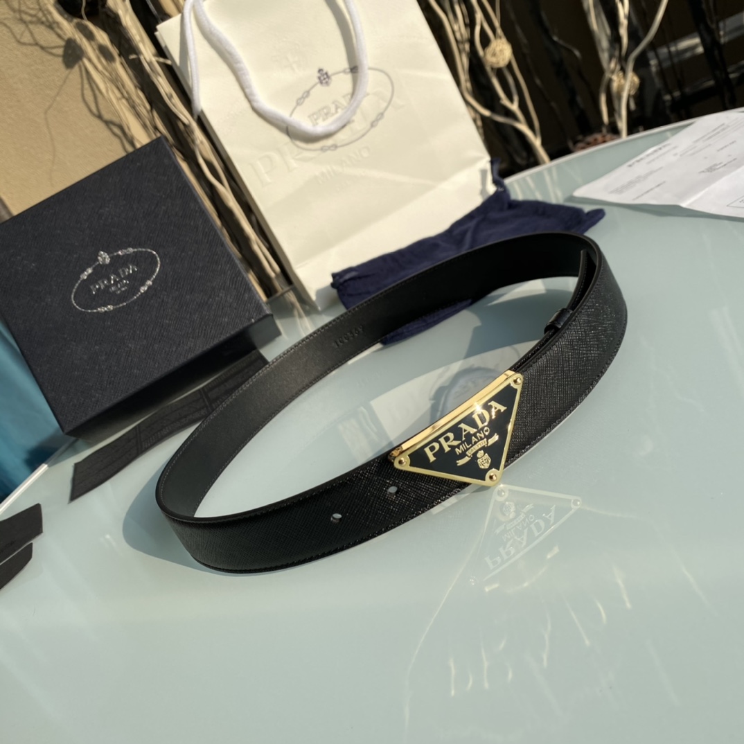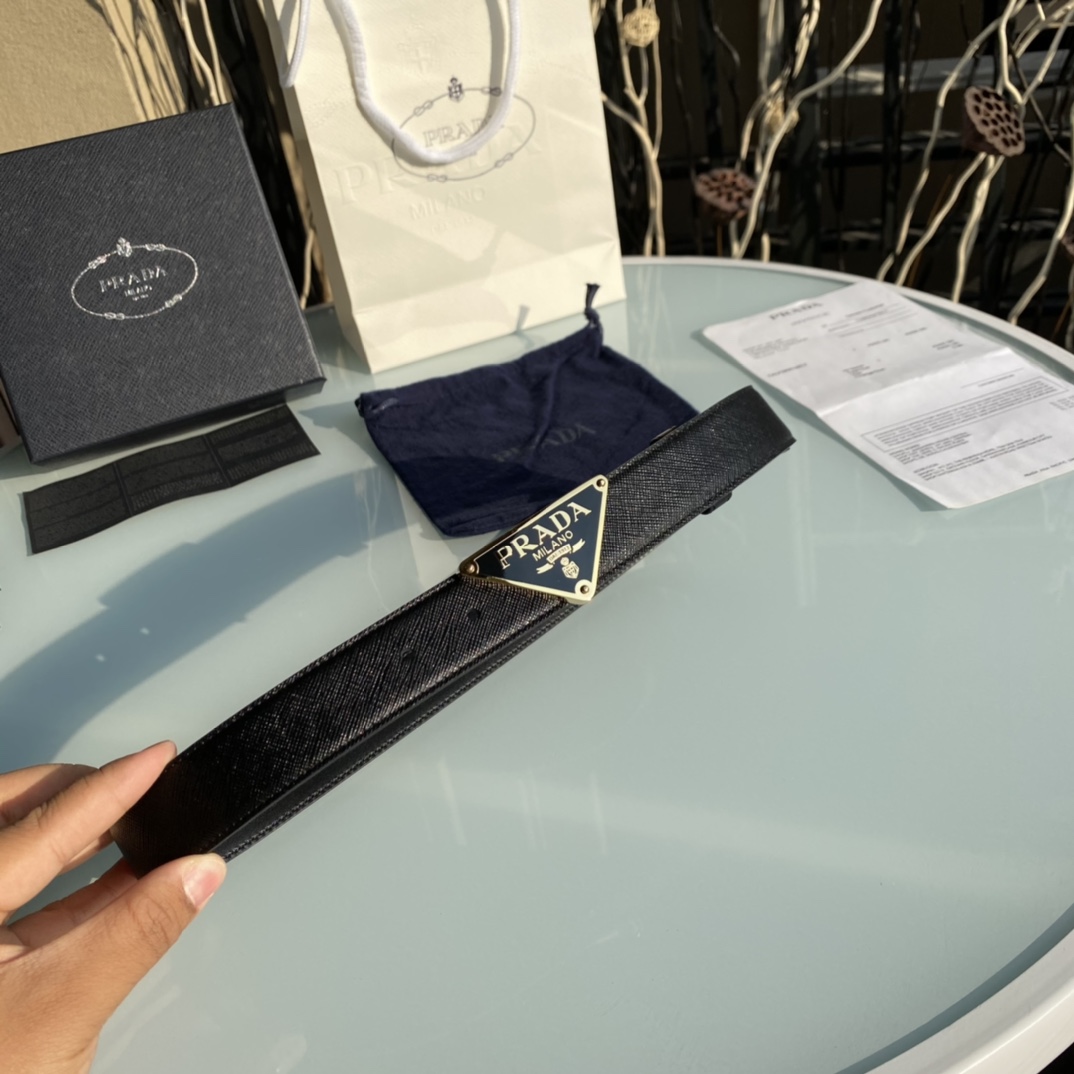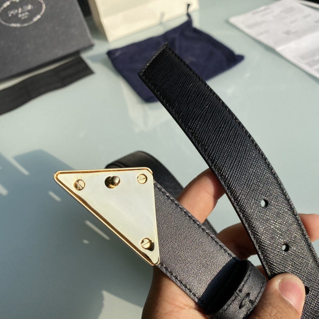 골드 버클과 메탈 삼각 로고 장식을 적용했습니다.