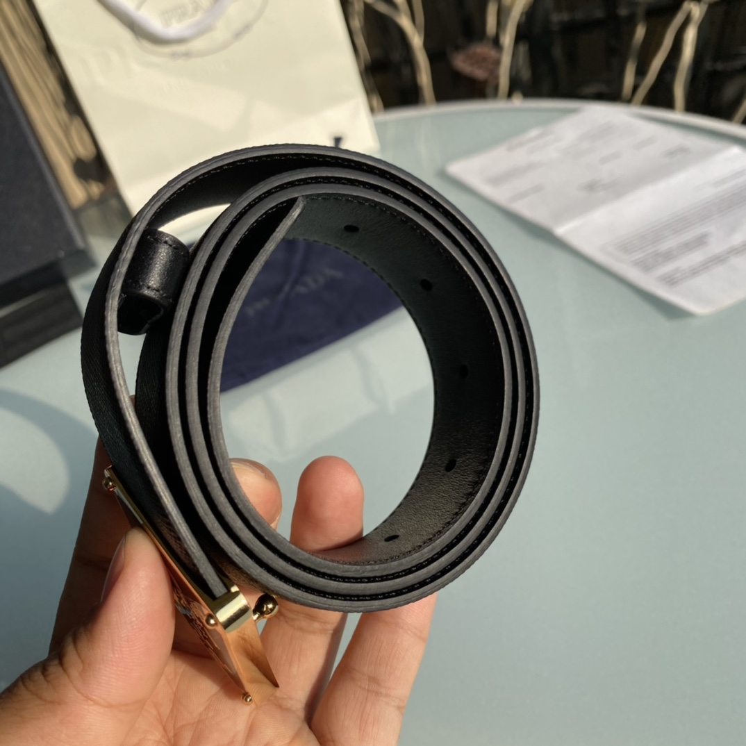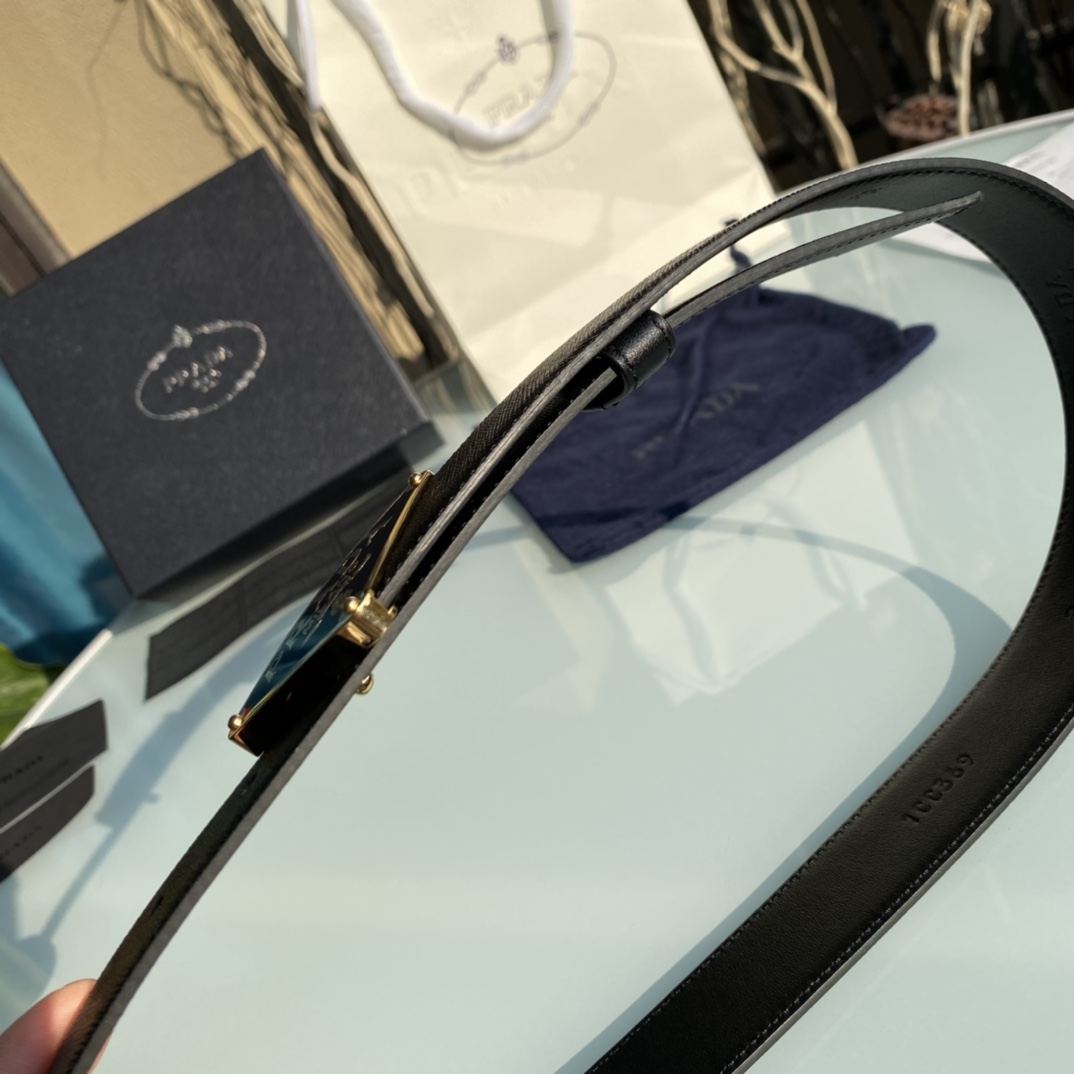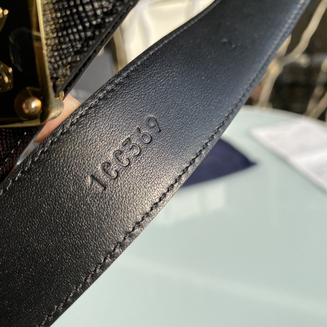 골드 버클과 메탈 삼각 로고 장식을 적용했습니다.