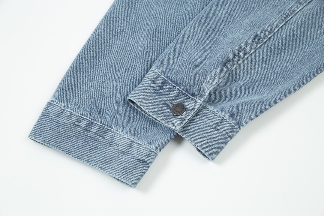 특징: 스판이 거의 없는 원단으로 데님 특유의 거칠고 빈티지한 질감 전달. 워싱 및 스톤 워싱 공정을 통해 자연스러운 색감 그라데이션과 빈티지 무드 구현