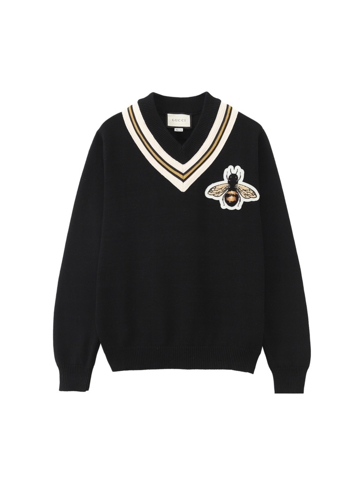 울과 롱스테이플 코튼 혼방 소재로 부드럽고 편안한 착용감.더블 스트라이프 디테일과 플록 꿀벌 자수로 완성도 높은 클래식 디자인, 남녀 공용.